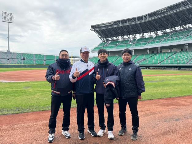 陳局長還親自慰問球隊,並帶領教練團參觀即將開放的成棒主球場,讓樂天教練團對新場地的設施表示高度讚揚。