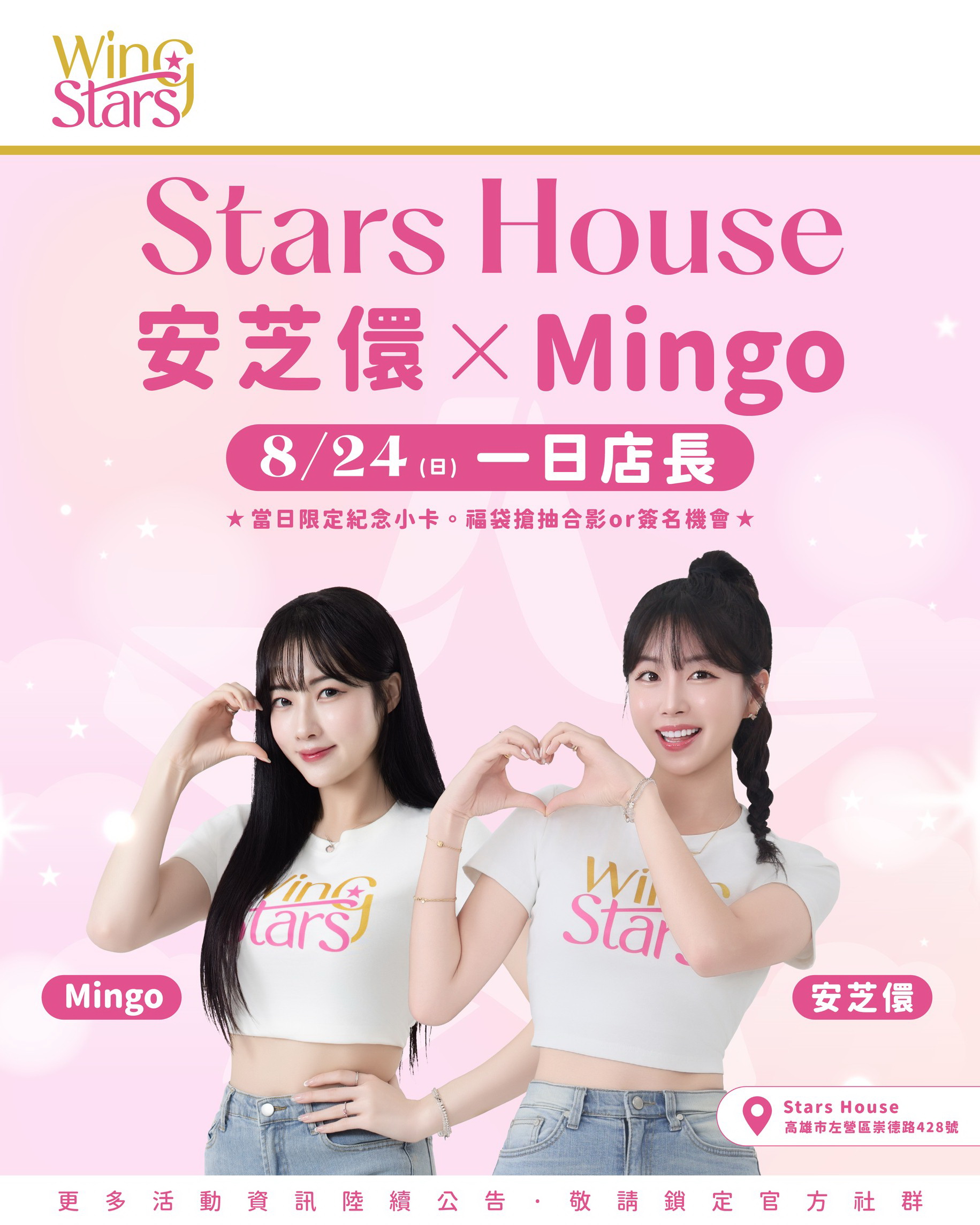 Wing Stars人氣成員安芝儇、Mingo驚喜現身 Stars House一日店長活動8月24日登場!