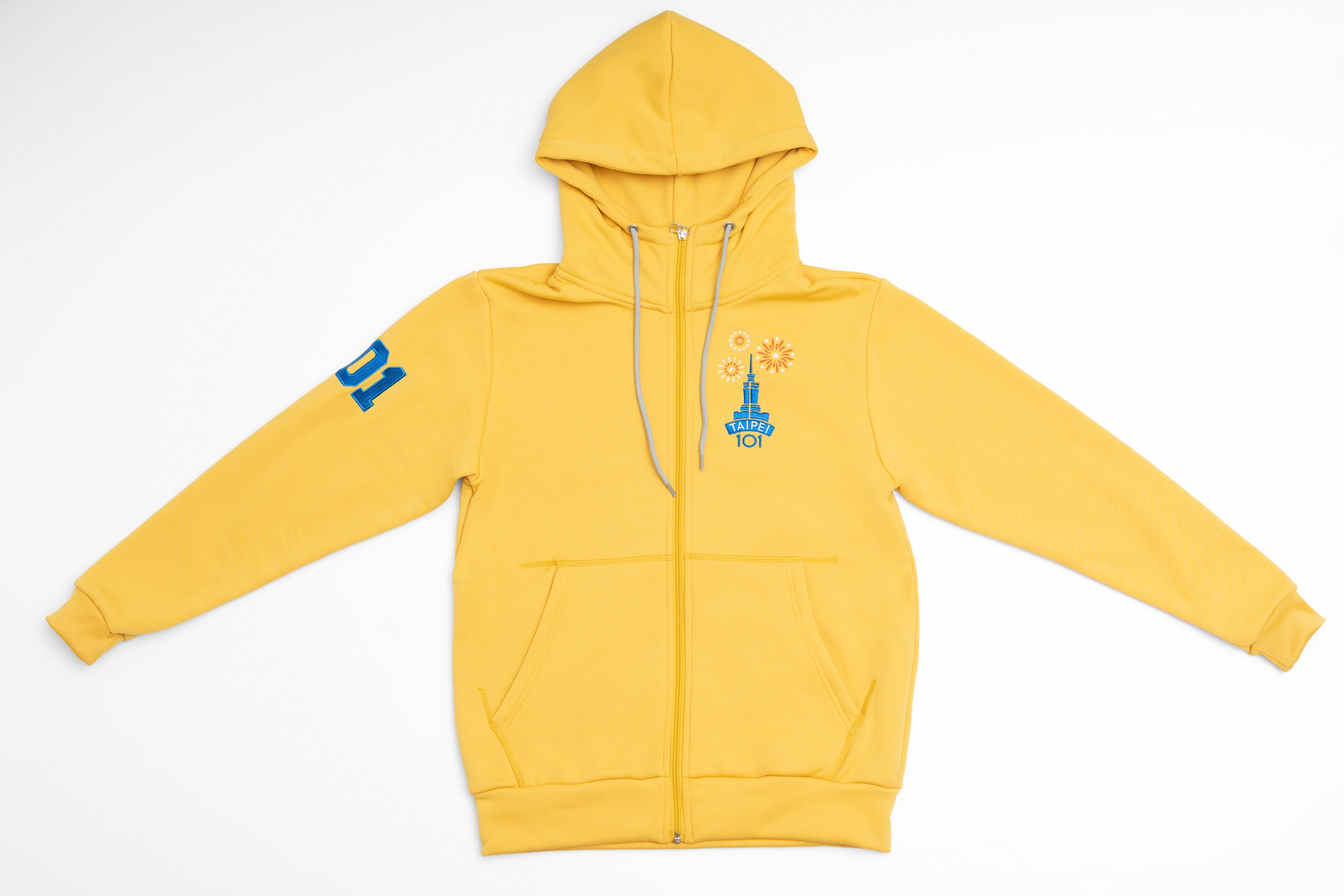 101塔尖芥黃刷毛連帽外套、台北變色馬克杯#夜、DB飲料套鑰匙圈-紅、101低筒花襪。