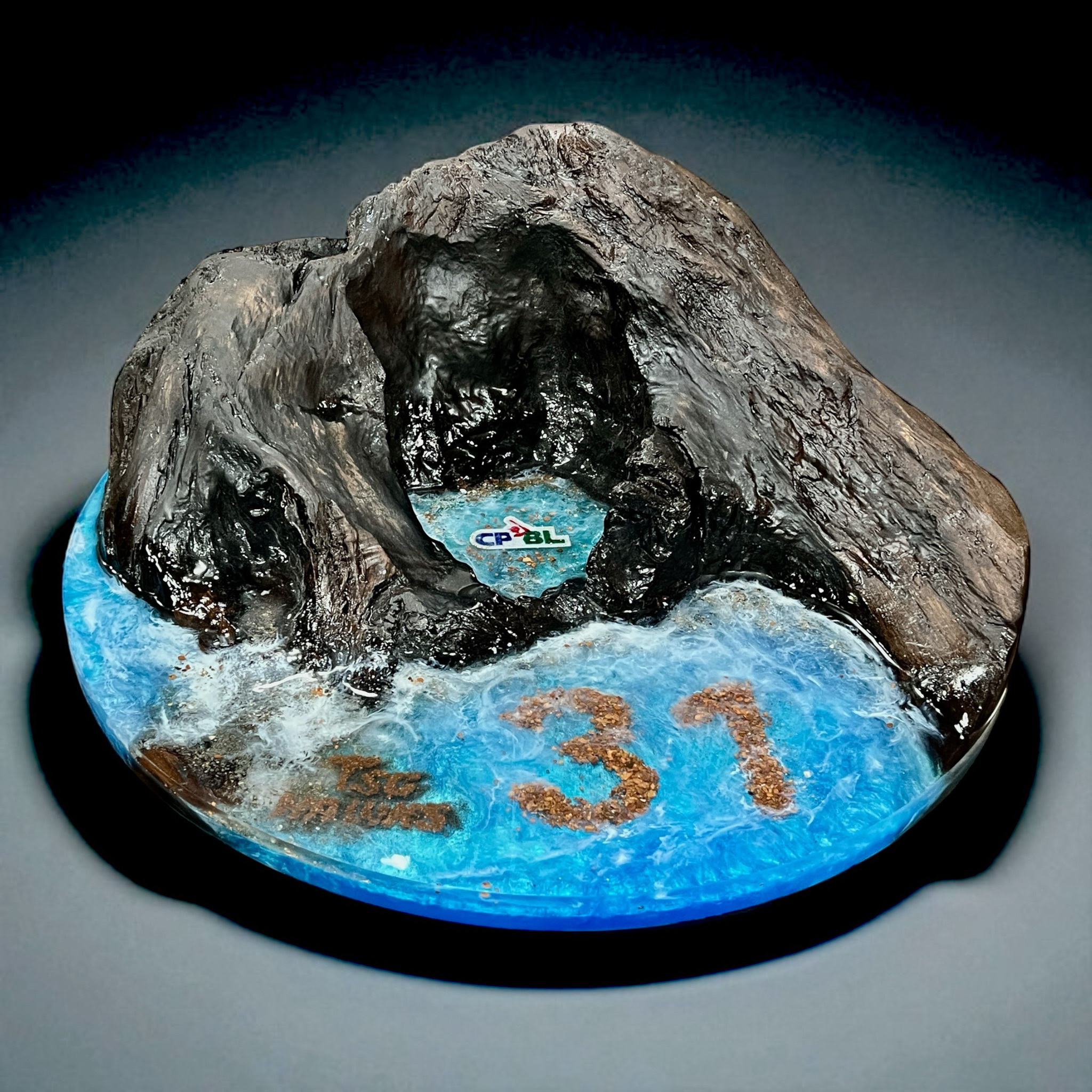 溝壑中嵌以「CPBL」徽章,代表智勝在中華職棒創下許多代表性的空前紀錄,猶如見證跨越世代的榮耀。