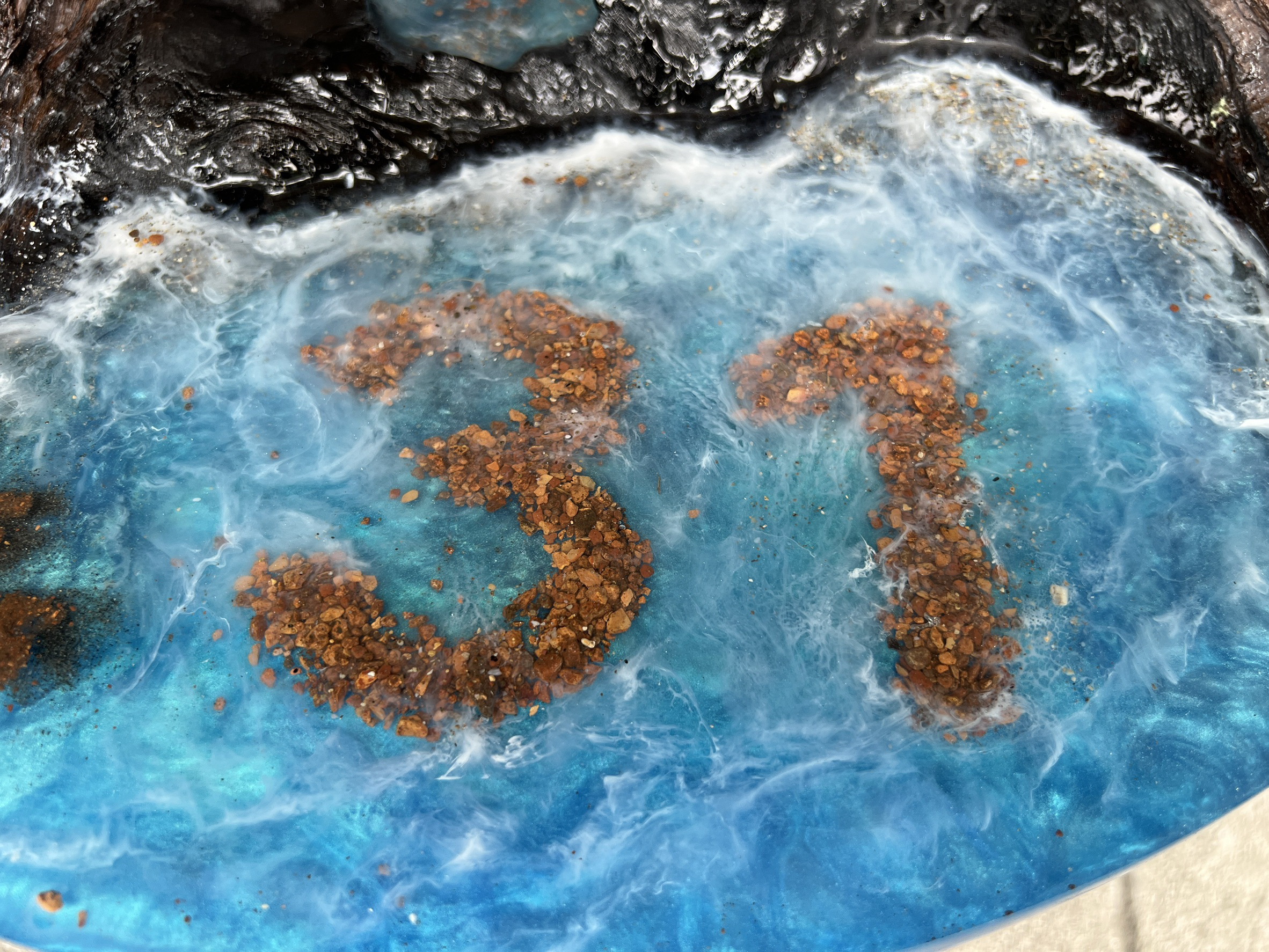 利用櫸木雕琢智勝的台東故鄉沿岸,湛藍海水映照記憶深處的浪濤。