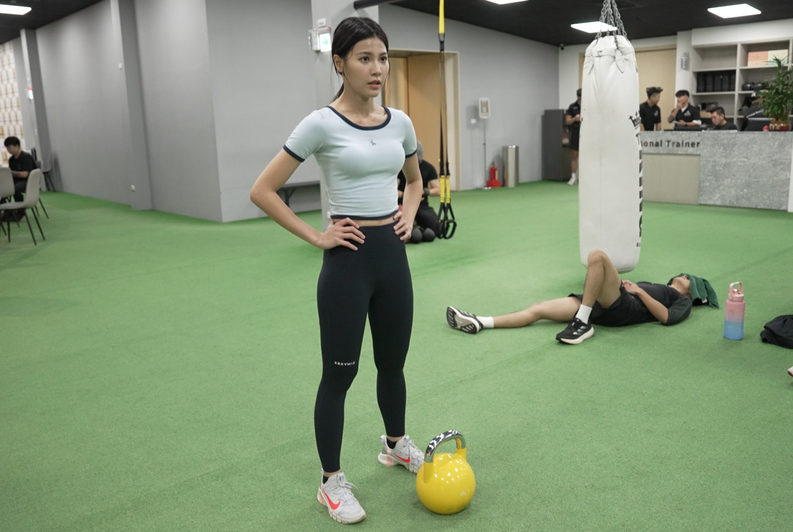 在所有關卡中,第三關「沙袋深蹲」對林浠而言可說是最艱難的「魔王關卡」。