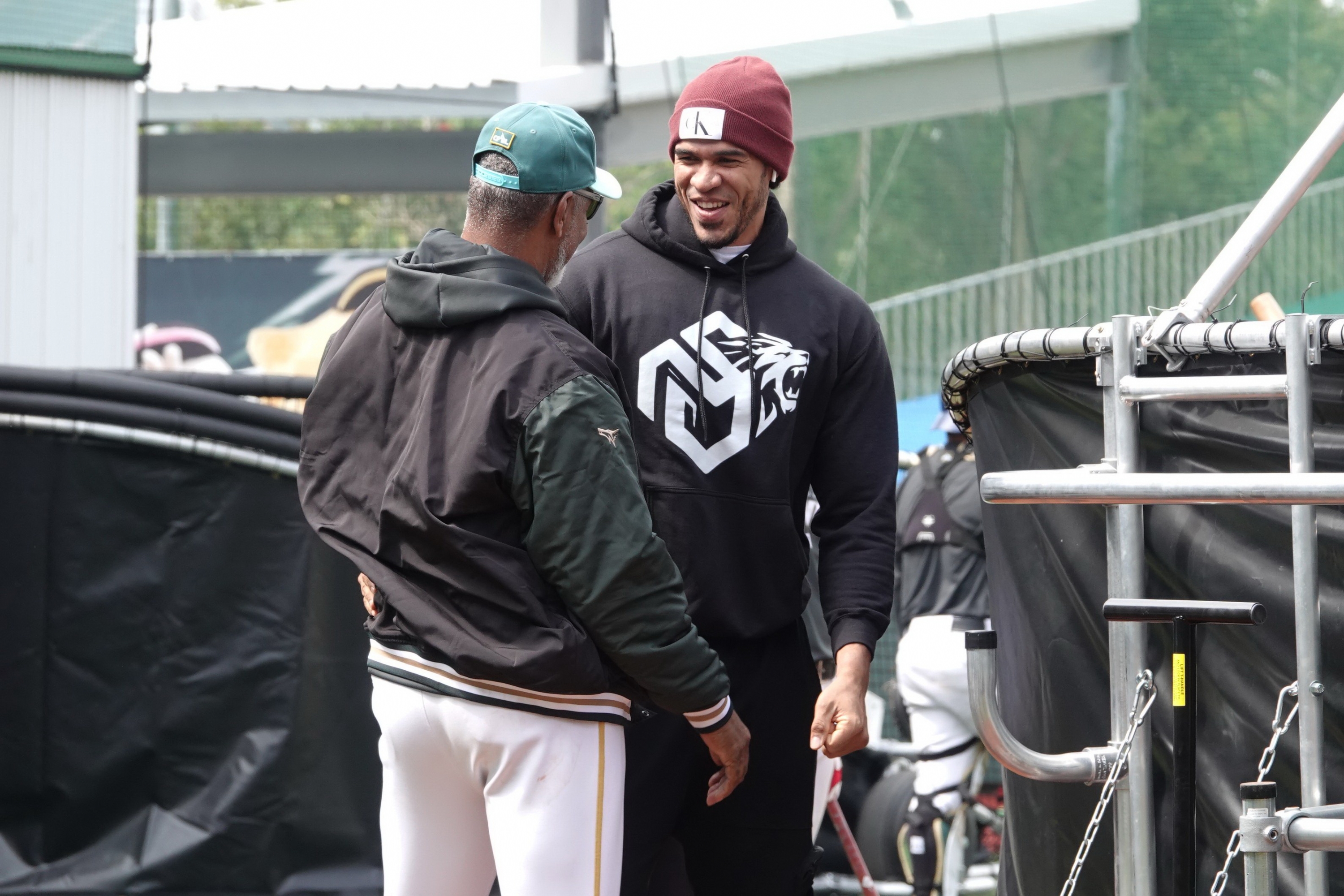 見到許久不見教練、隊友,彼此送上熱情擁抱、關心近況,而魔鷹預計明日投入球隊春訓。
