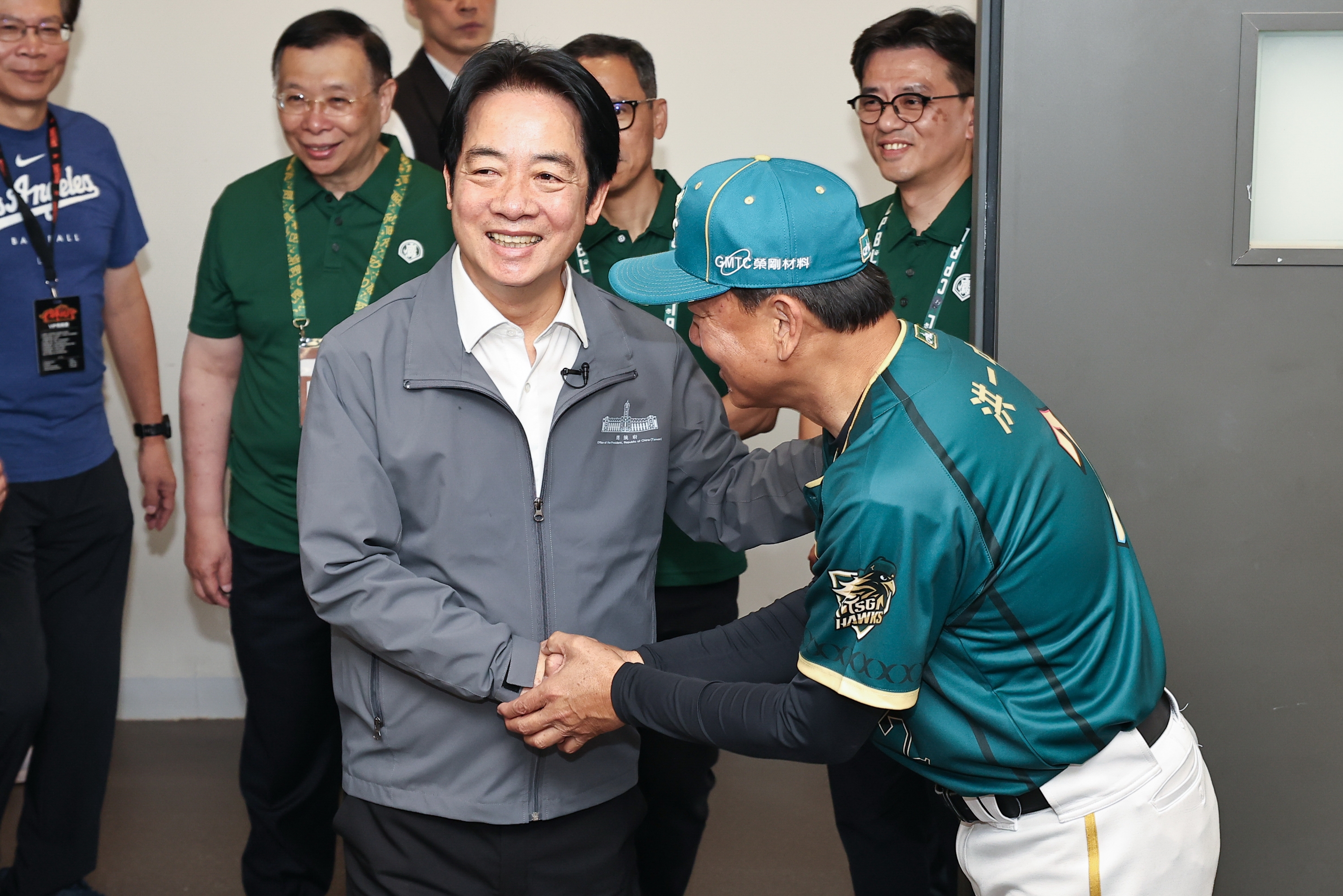 同時也是亞太主球場歷史性中職首戰,總統賴清德親自來到現場,賽前也到台鋼雄鷹休息室與教練團。