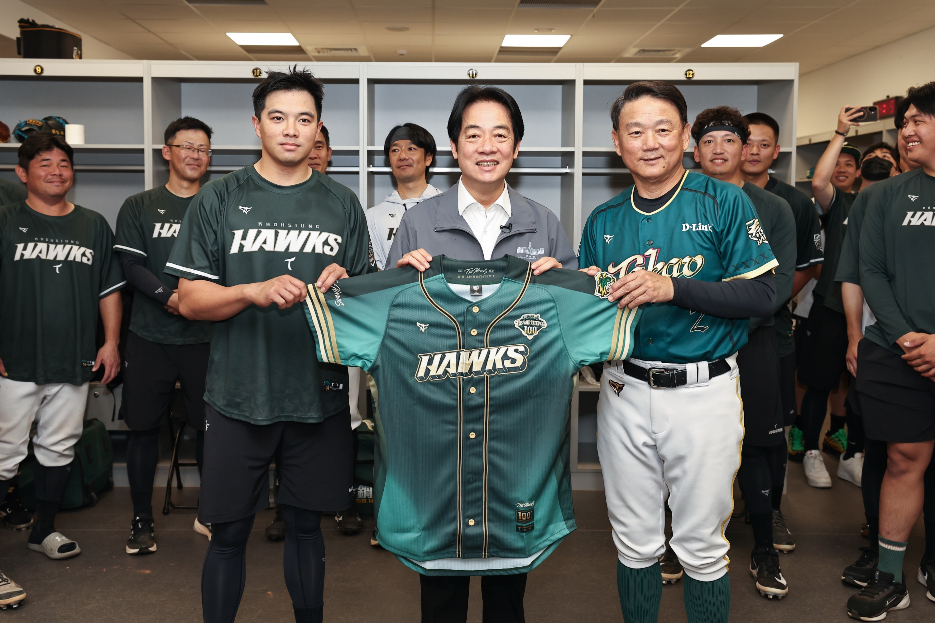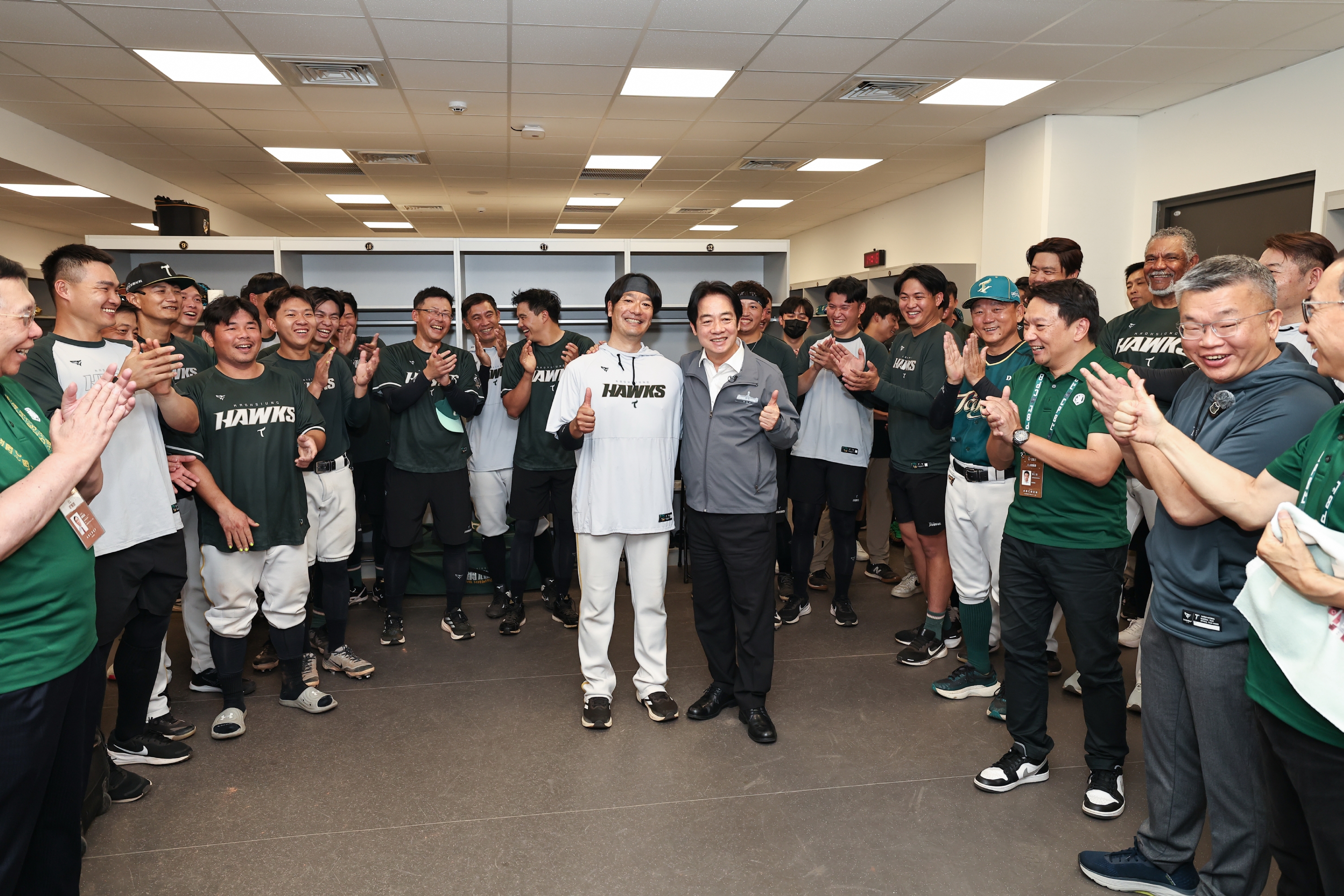 總統進到休息室之後,與教練團、選手互動,球團人員打趣表示總統「深入敵營」,展現對南部球隊關心。