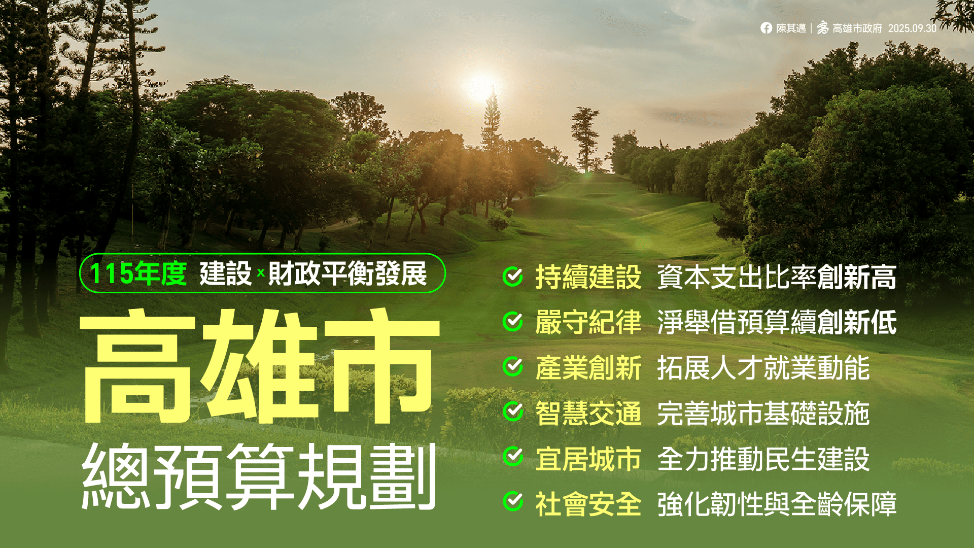 高市府強調,115年度預算是在符合 公共債務法 與 財政紀律法 前提下審慎規劃,將有限資源發揮最大效益。