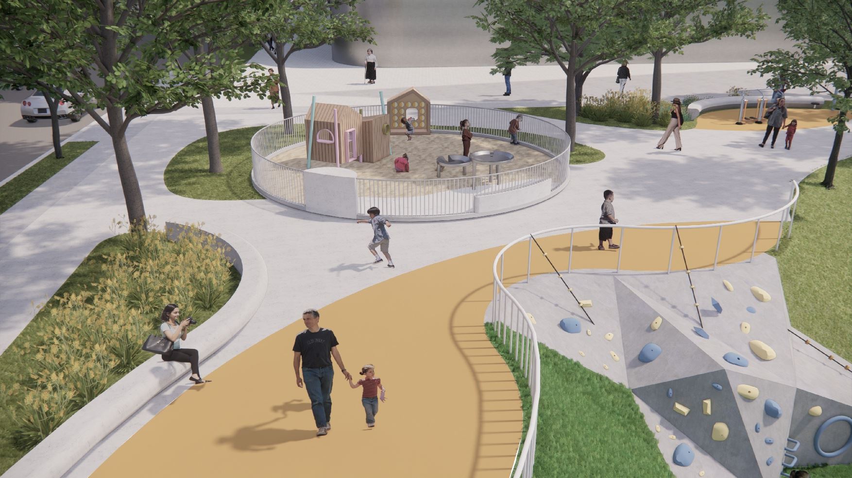 公園設計結合地形特色,將打造攀岩牆、滑梯、滑草區等趣味設施,讓孩子盡情探索。