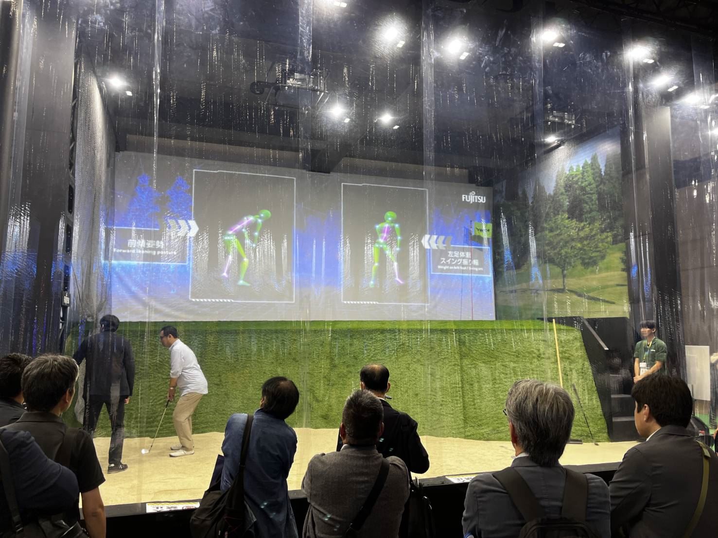 - Fujitsu 則以智慧偵測技術模擬高爾夫揮桿動作,並提供即時分析報告。