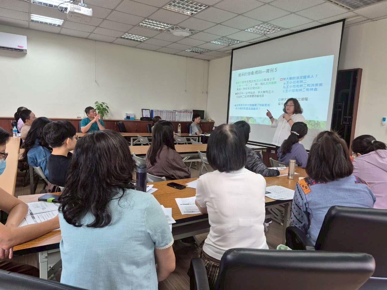 課程以系統化內容與實務案例結合,讓參與人員更深入了解親屬與繼承法律制度,並透過交流互動,提升第一線服務的專業品質。