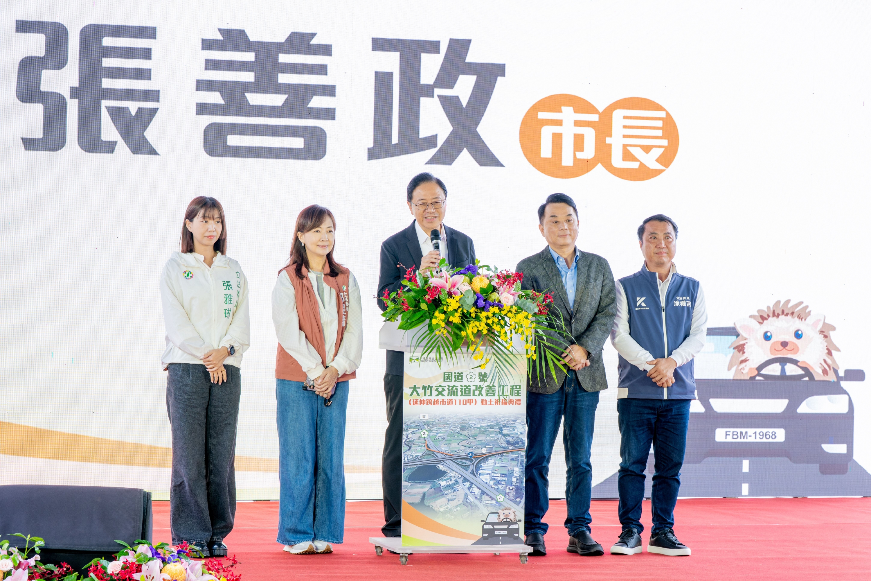 今(3)日下午由市長張善政親自主持「國道2號大竹交流道改善工程(延伸跨越市道110甲)動土祈福典禮」。