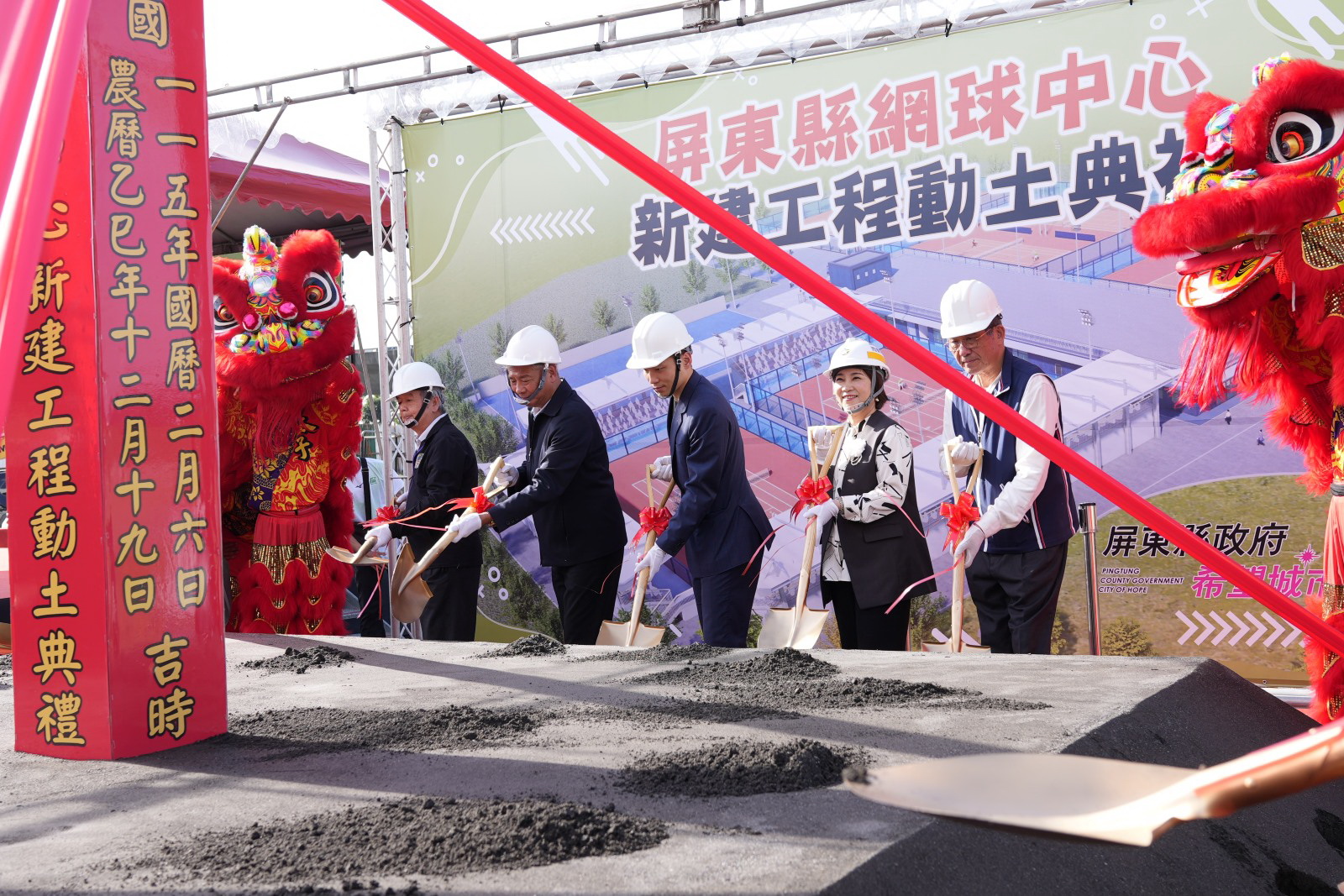 屏東縣網球中心新建工程動土典禮由縣長周春米、運動部長李洋與中華奧林匹克委員會、中華民國體育總會。