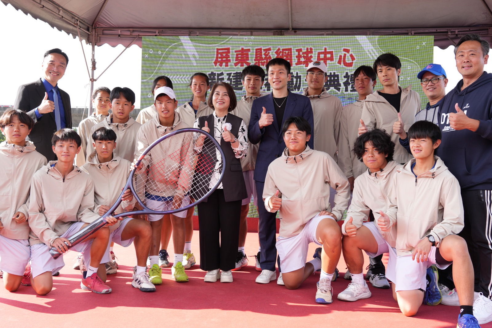運動部長李洋特地南下恭賀,縣長周春米表示,將興建8面符合國際賽標準的紅土球場。