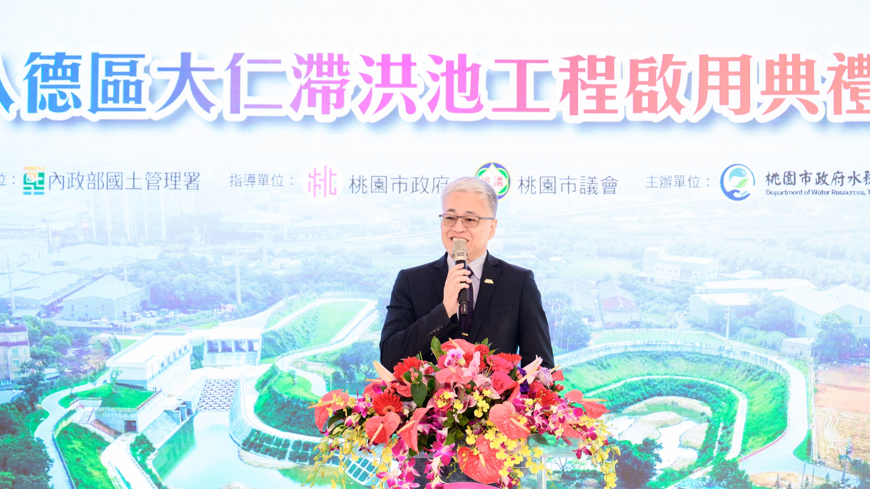 為強化城市防洪能力並因應極端氣候帶來的豪雨挑戰,桃園市政府於9日上午在八德區舉行「大仁滯洪池啟用典禮」。