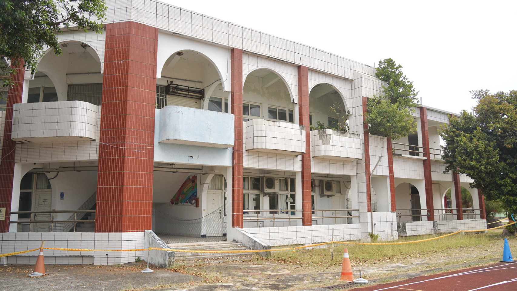 至今已超過40年,長年受到海風鹽蝕、地震與颱風影響,多處梁柱出現龜裂與鋼筋外露情形,經耐震評估判定結構安全堪慮,建議拆除重建。