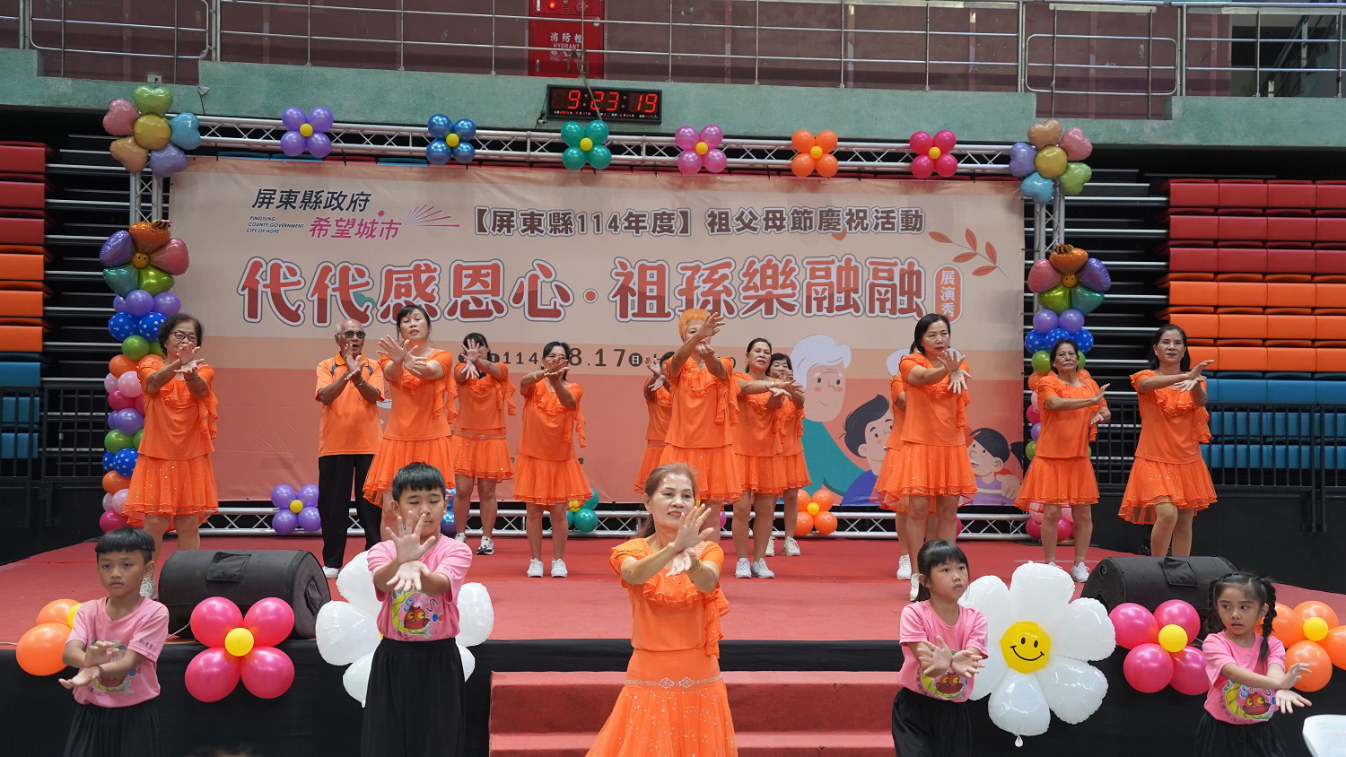 屏東縣政府於(17)日在縣立體育館熱鬧舉辦 「代代感恩心 祖孫樂融融」祖父母節慶祝活動。