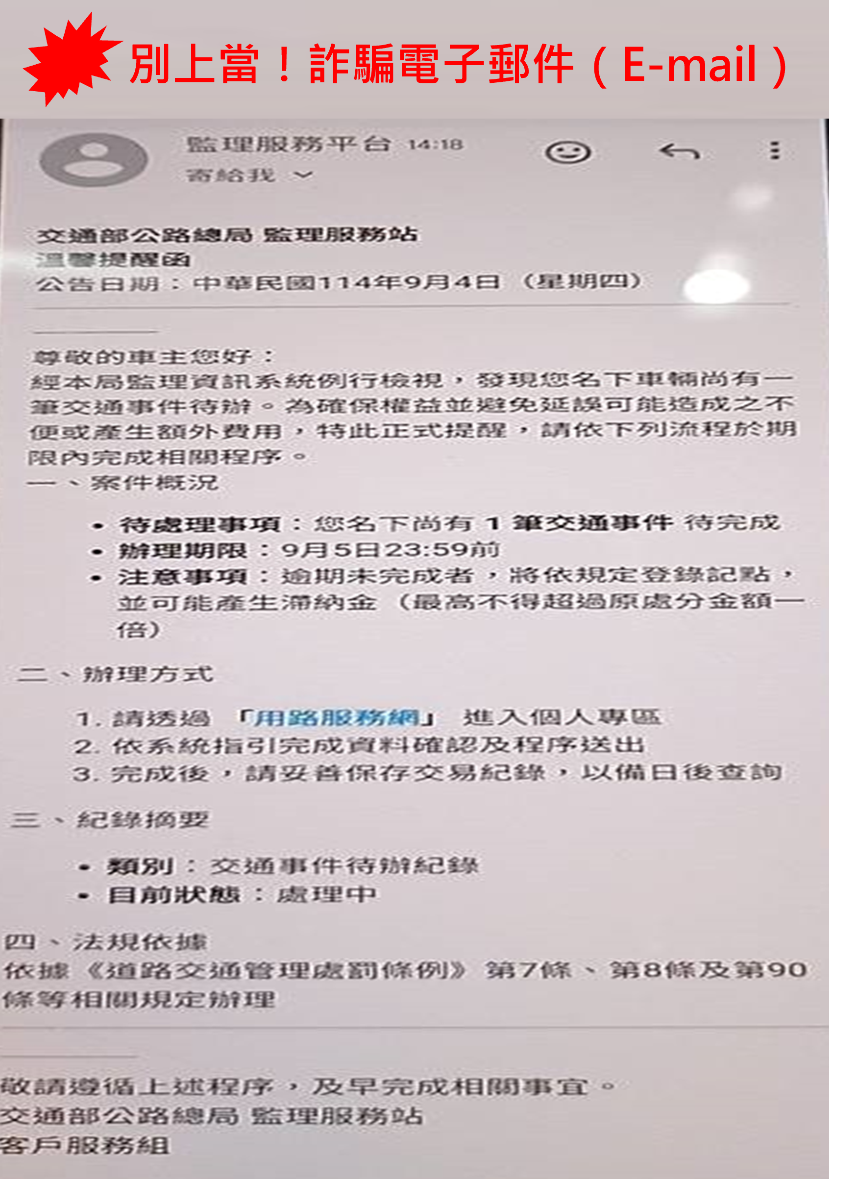 ( 別上當!詐騙電子郵件(E-mail) 圖/高雄區監理所提供 )