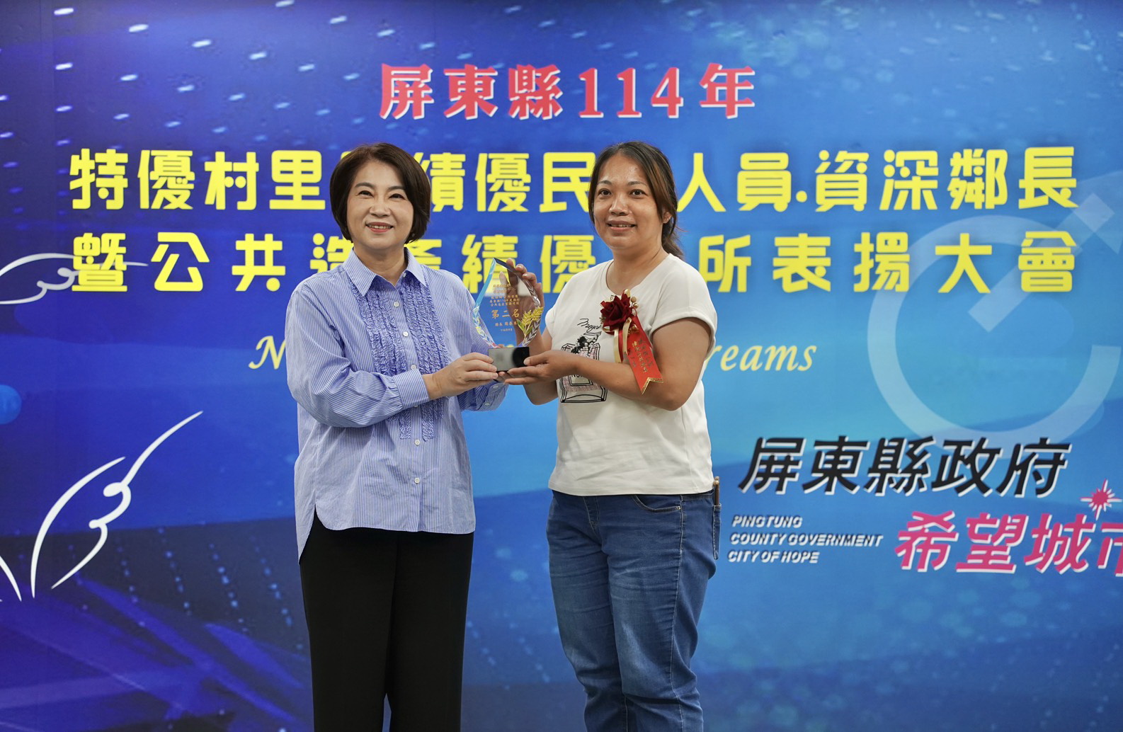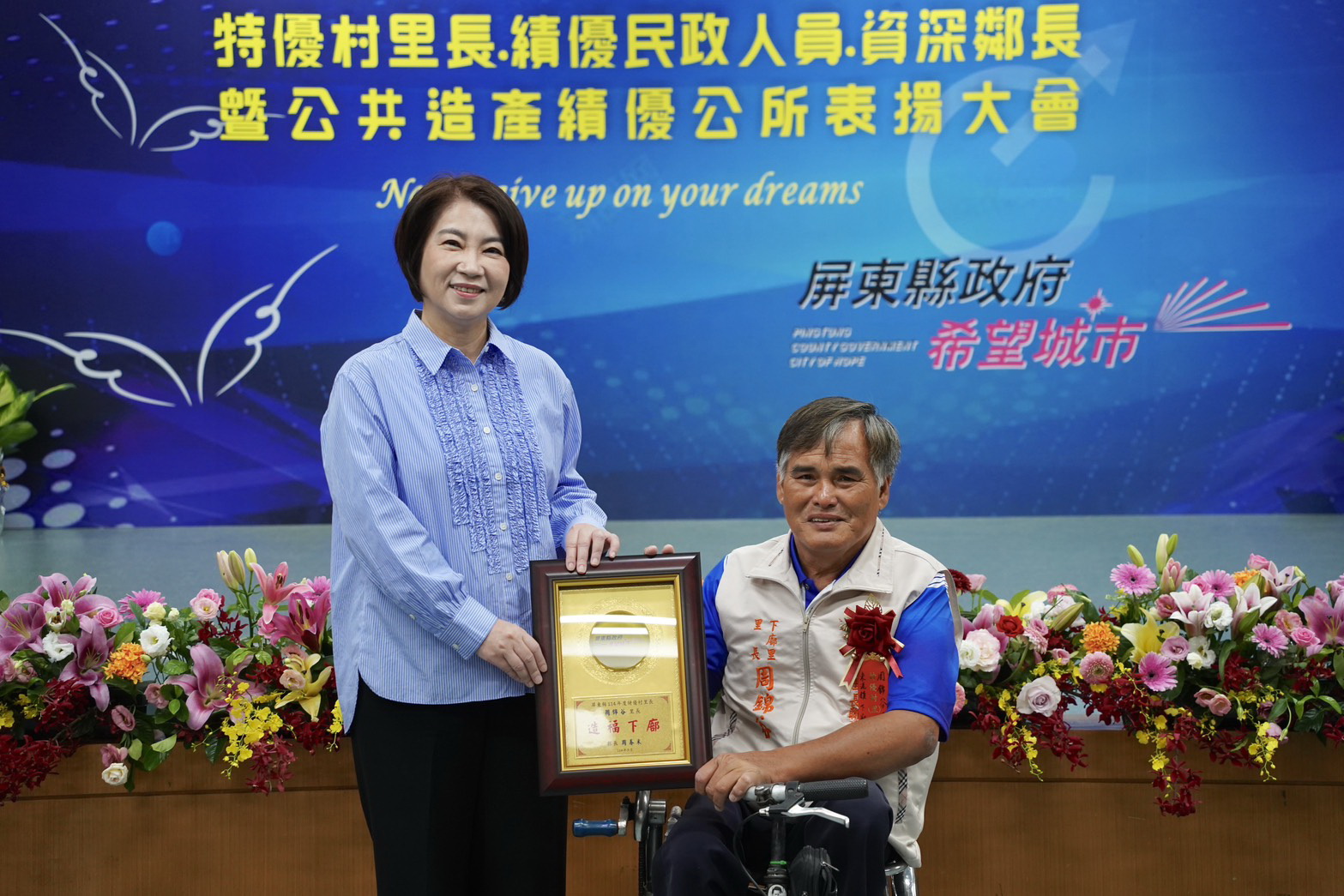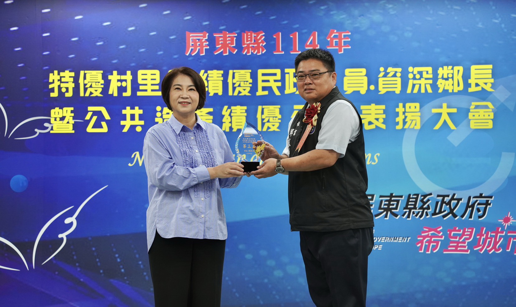 屏東縣政府於12日舉行 「114年度特優村里長、績優民政人員、資深鄰長暨公共造產績優公所表揚大會」。