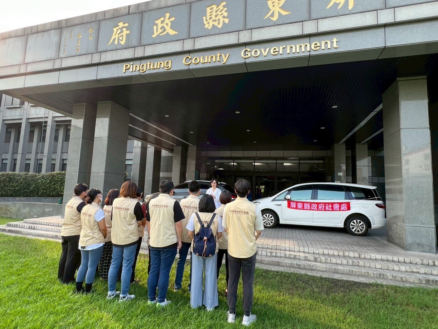 屏東縣政府社會處於(7)日上午7時30分,出動第一梯次13位社工同仁前往花蓮光復鄉。
