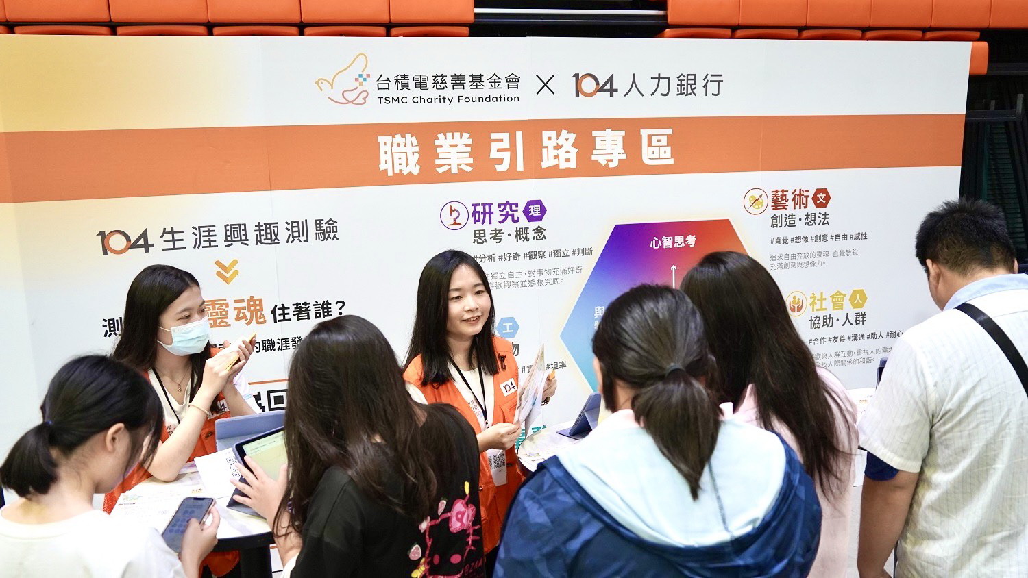 由台積電慈善基金會與104人力銀行共同規劃,透過性向測驗、職涯諮詢與六大探索關卡。