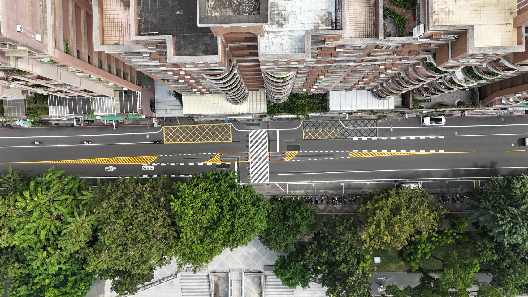 交通局說明,目前已完成路段標線調整與道路線形勾勒,後續將由工務局接力進場施作中央實體庇護島與減速平台等道路工程。