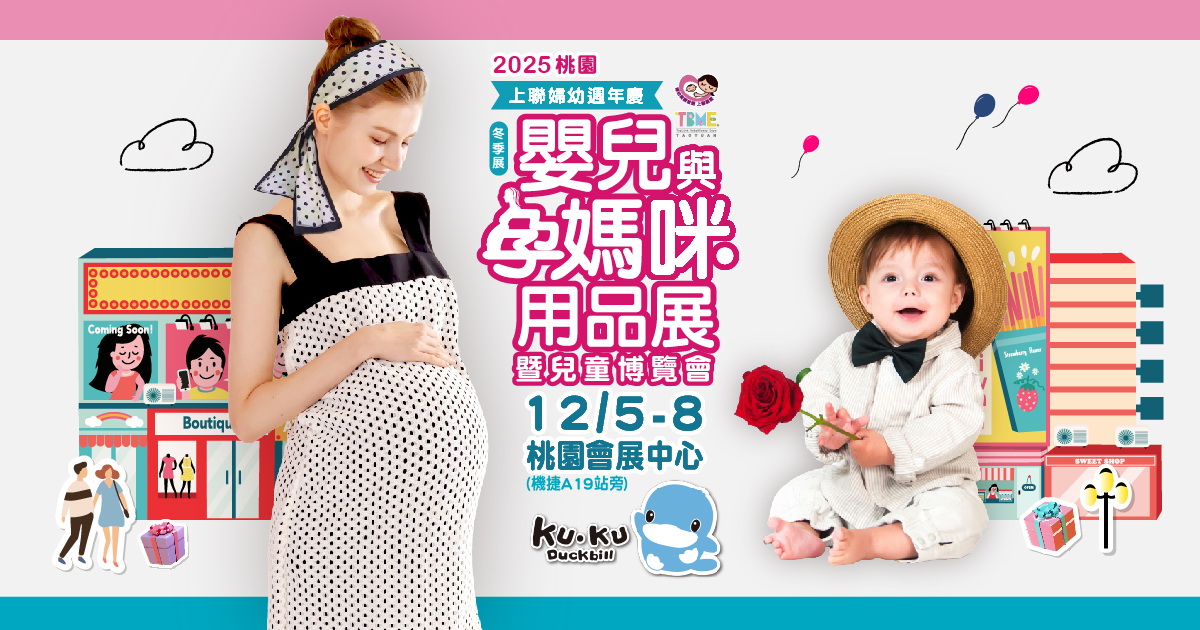 2025年首屆「桃園嬰兒與孕媽咪用品暨兒童博覽會」即將在12月5日至12月8日於桃園會展中心盛大登場。