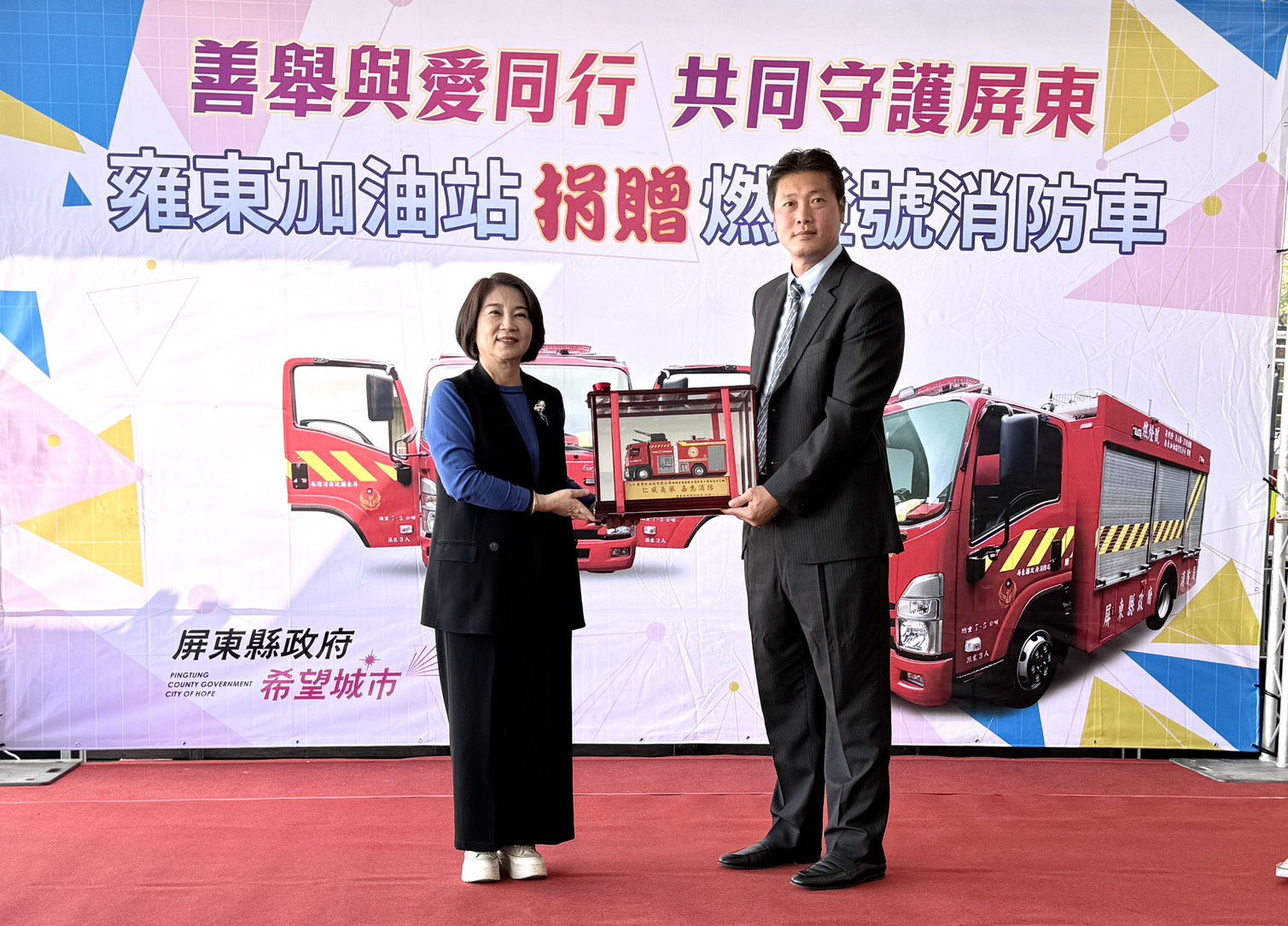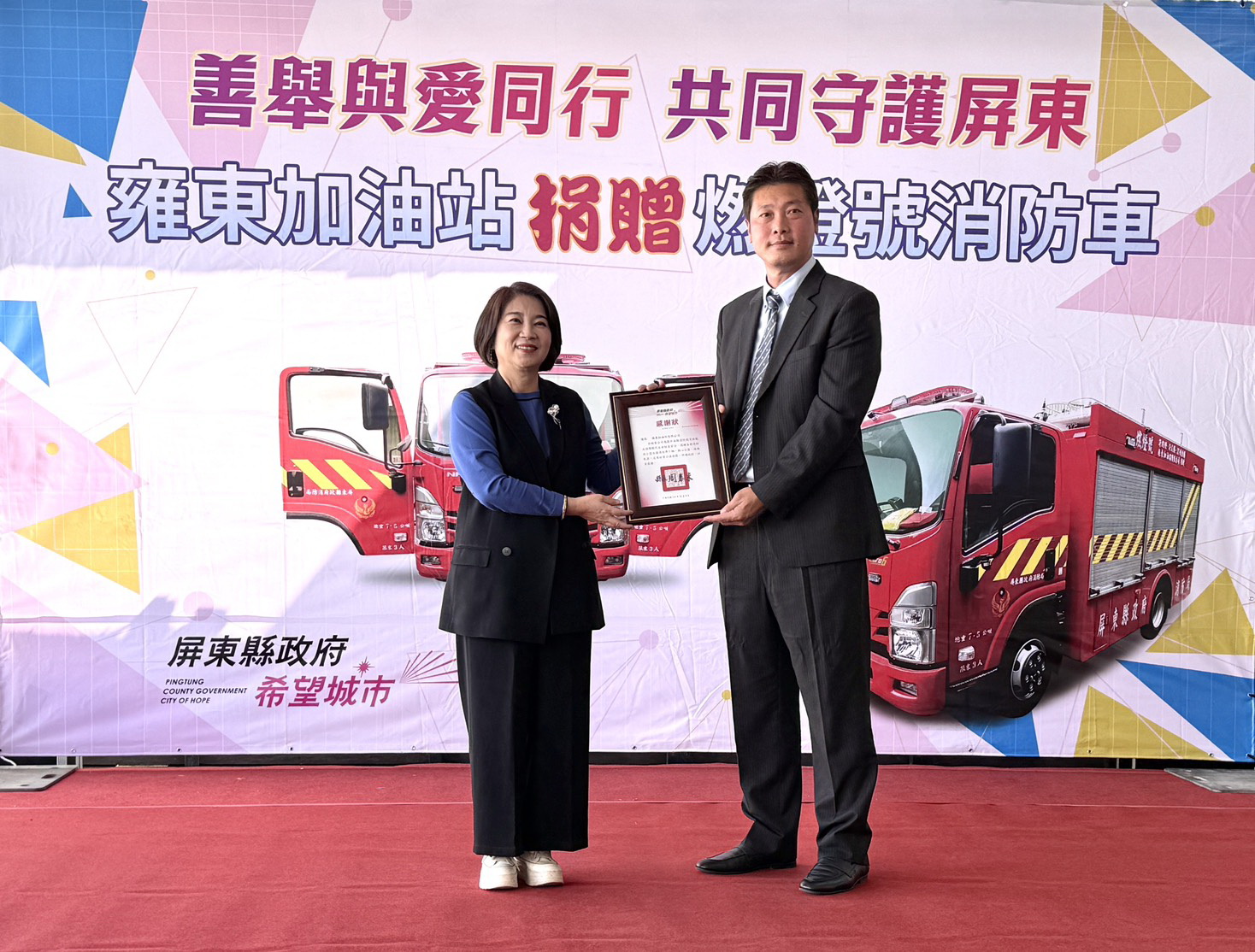 善舉與愛同行,雍東加油站捐贈燃燈號消防車共同守護屏東