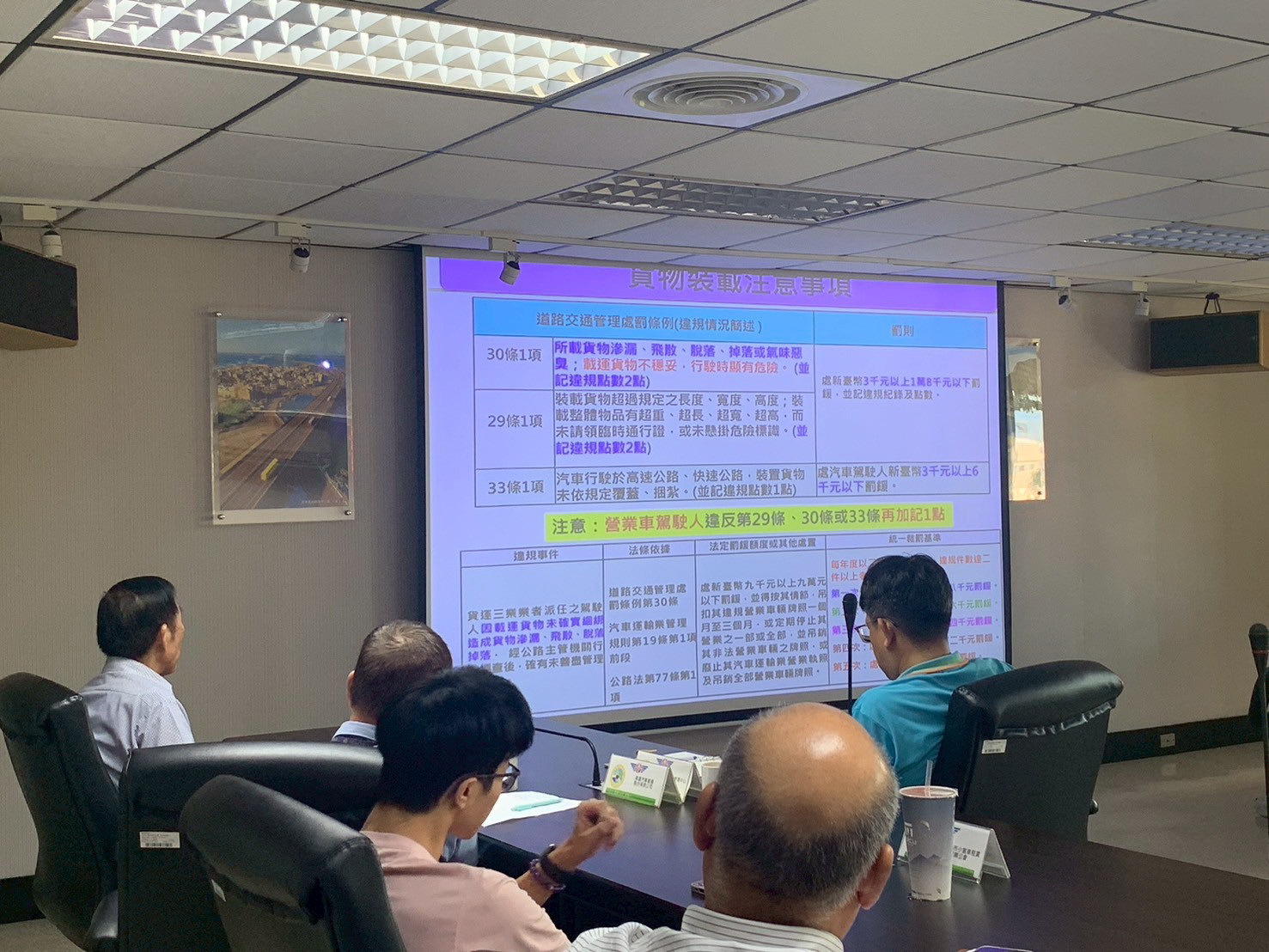 除向業者說明宣導最新修訂之交通相關法規外,並特別強調出車前應確實檢查貨物裝載與綑綁情形。