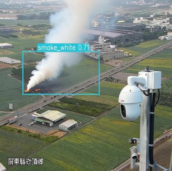 為防制露天燃燒,屏東環保局已佈建2套制高點AI偵煙系統,再搭配無人機(UAV)及全時無休輪班稽查人員。