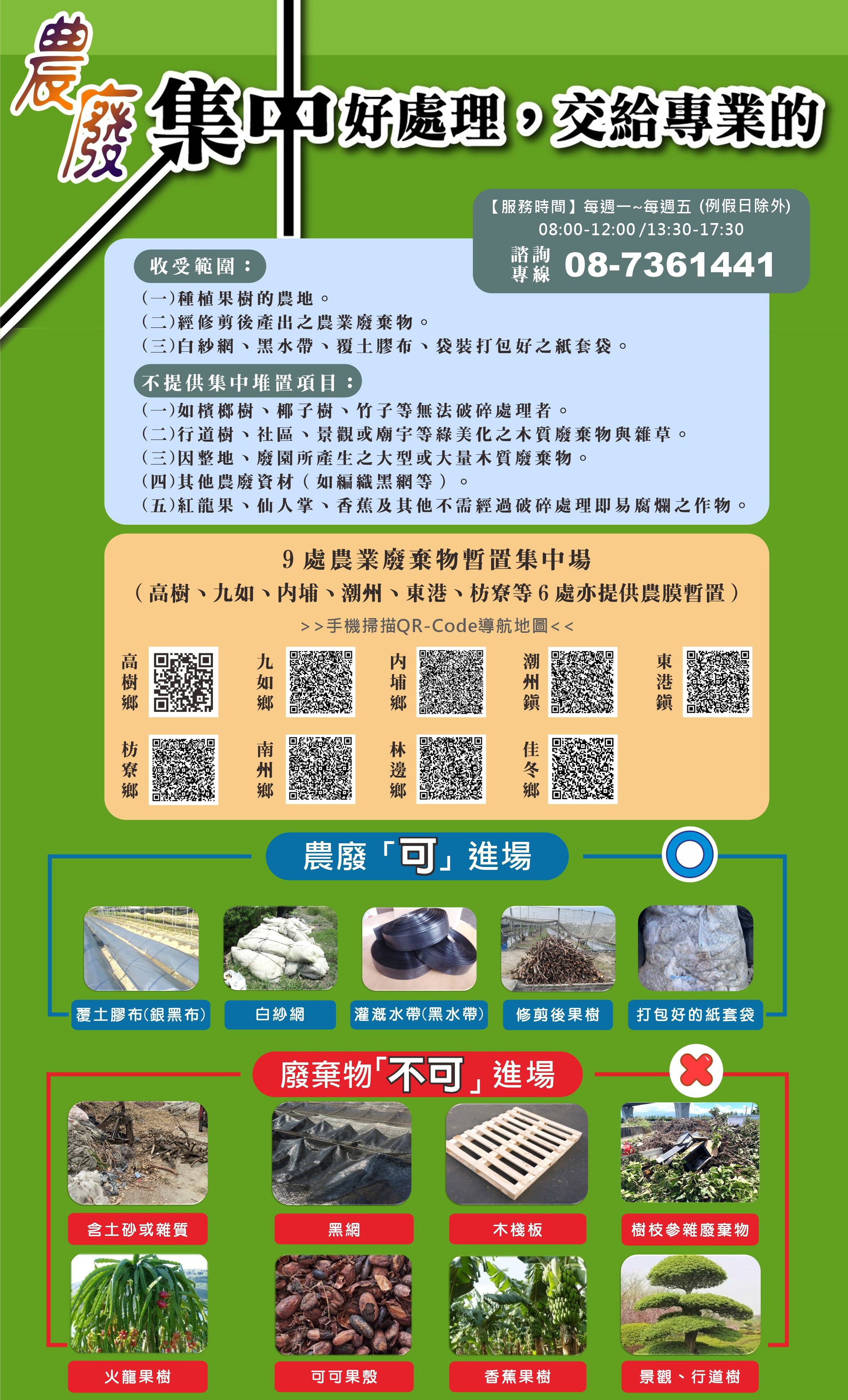 而農民若有農廢處理諮詢需求,請於上班時間撥打專線:08-7361441。