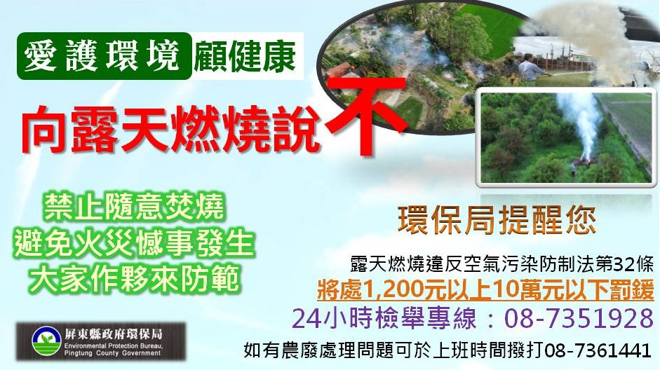 為維護屏東縣空氣品質並守護縣民健康,屏東縣環保局全面強化露天燃燒科技執法力度。