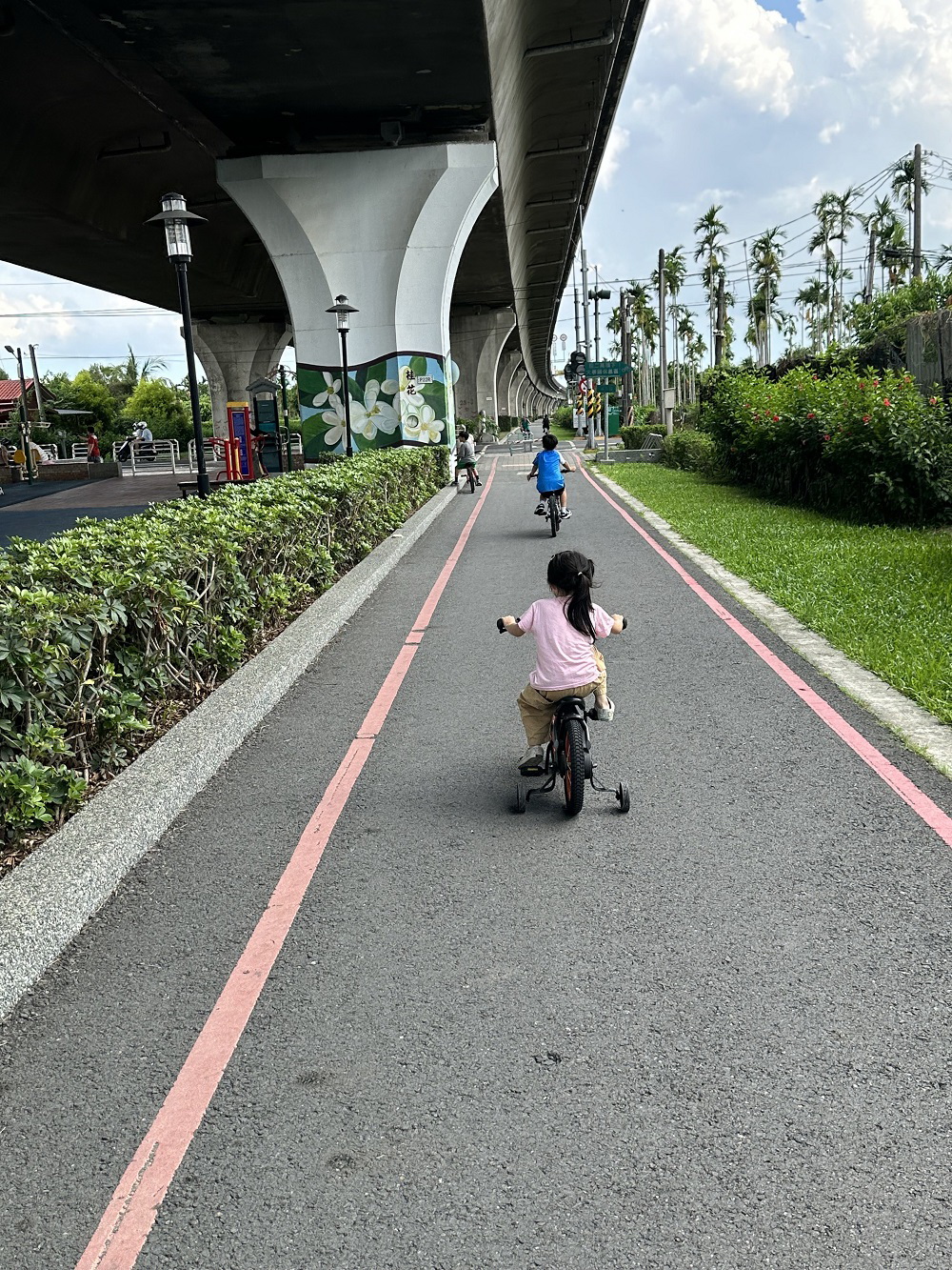 利用南二高橋下空間,打造不受日曬雨淋影響的長距離安全騎乘環境,總經費3,000萬。