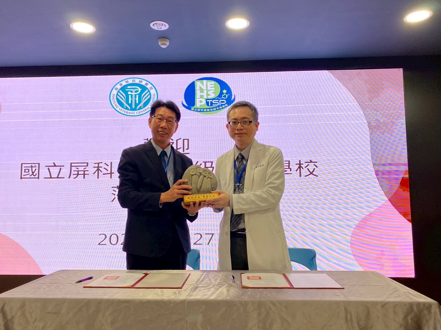 活動中,屏科實中致贈院方石雕藝品「草鴞」,象徵智慧、洞見與守護精神。