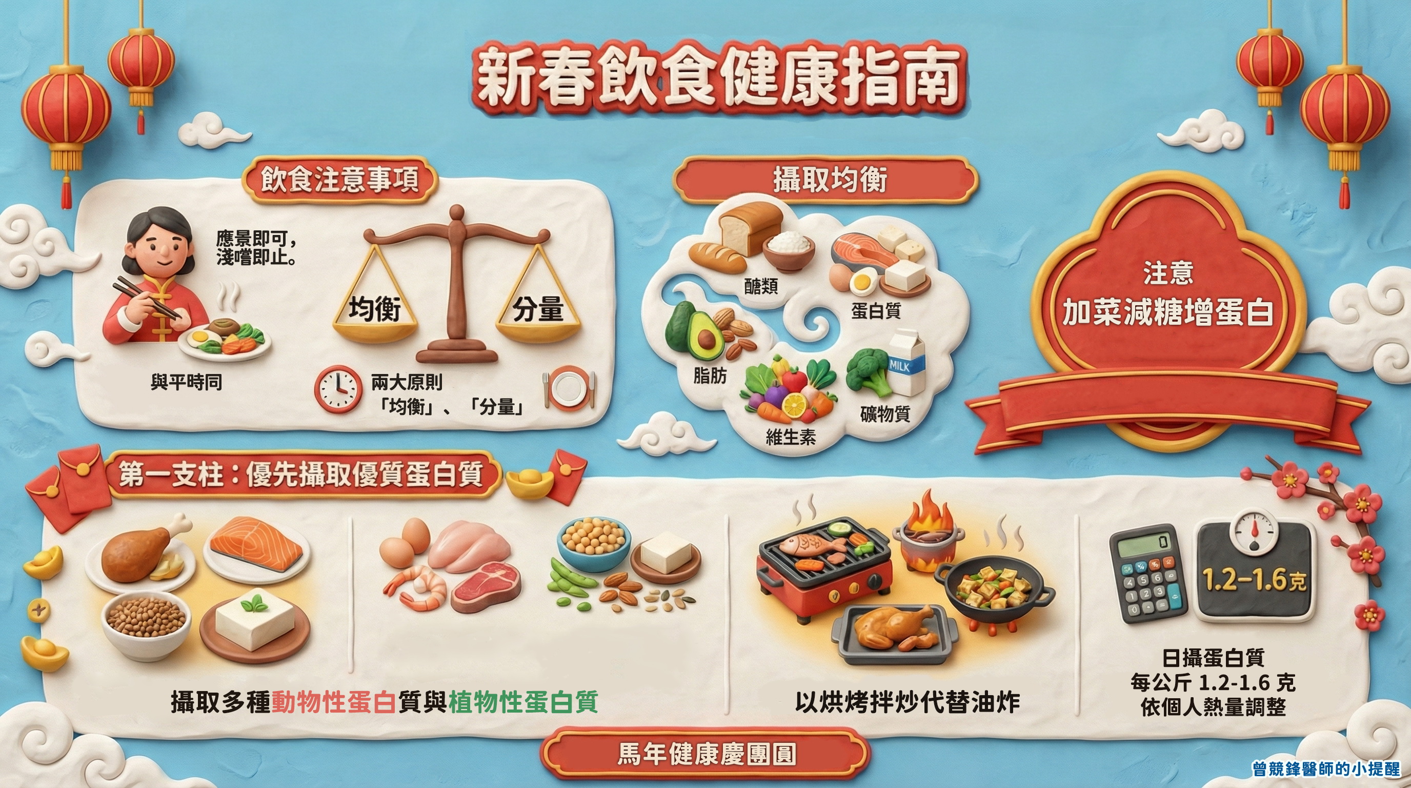 並提醒團圓聚餐應把握「均衡營養」與「適度分量」原則,避免過量攝取高油、高糖、高鹽食物,才能安心過年、健康迎新。