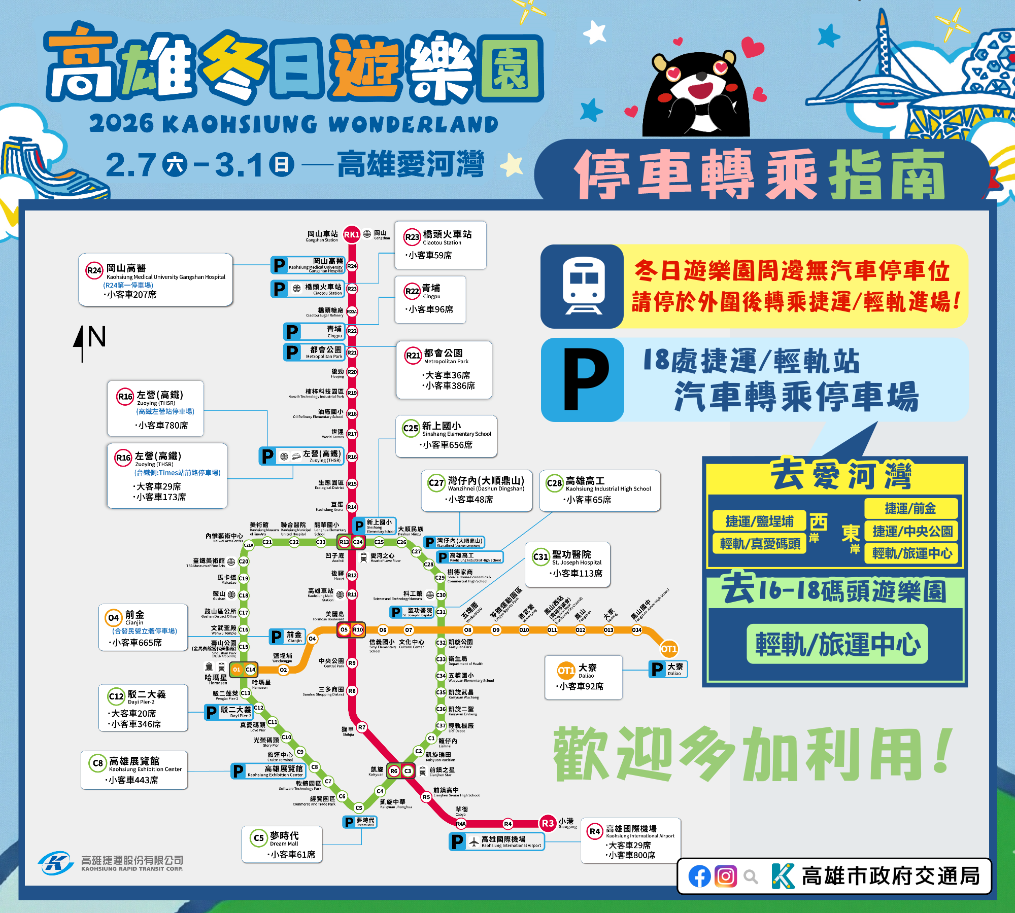 2026 Kaohsiung Wonderland 冬日遊樂園,愛河灣交通管制,搭乘大眾運輸最輕鬆!