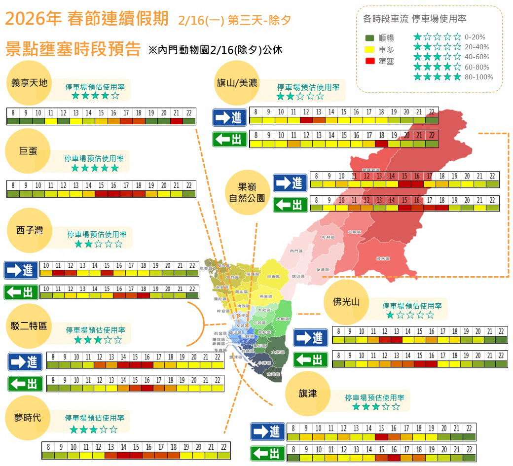 春節出遊不塞車?高雄熱門景點車流高峰報你知