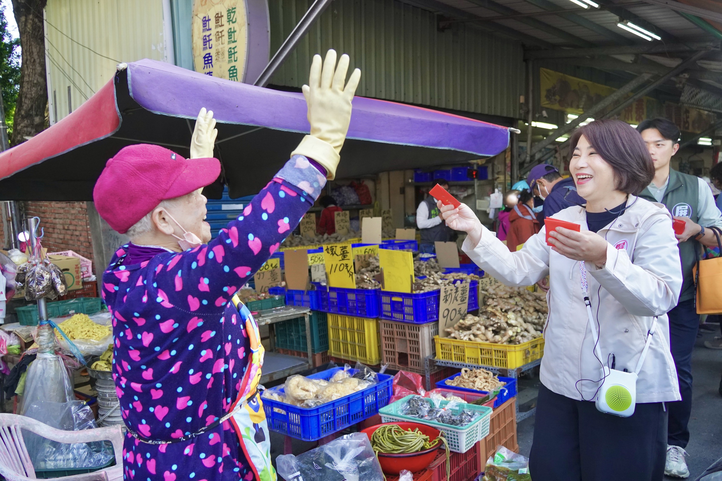 農曆春節將至,屏東縣長周春米(13)日一早前往和生市場、建國市場和北區市場發一元紅包,向大家拜早年,恭賀新喜!