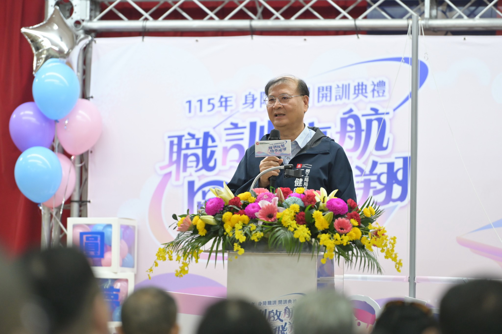 江健興局長勉勵全體學員,除了要認真學習工作技能之外,也要強化自身的心理素質,博訓中心教學團隊在工作技能養成。