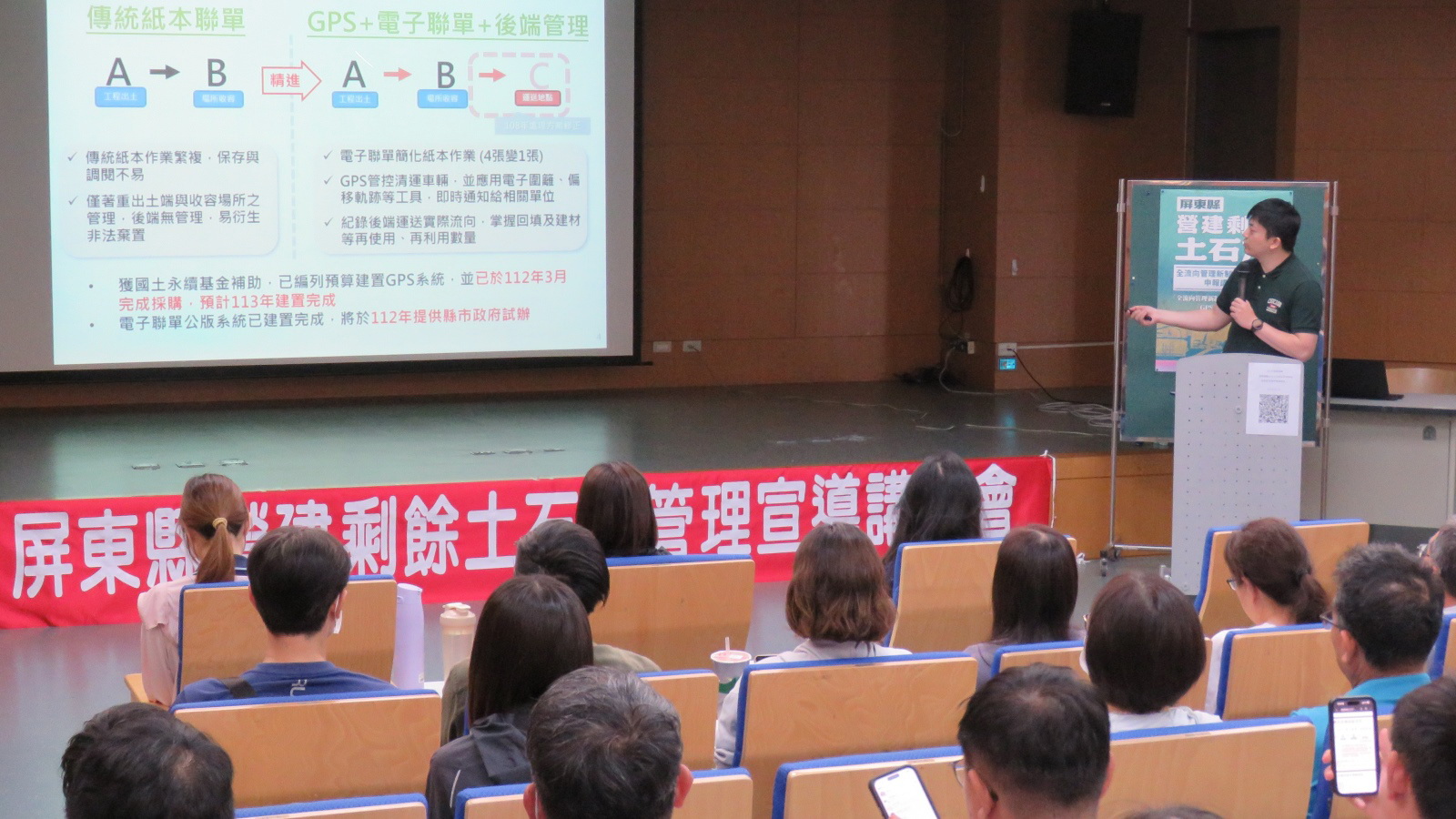 屏東縣政府於(26)日在縣府會議室舉辦「營建剩餘土石方全流向管理新制政策說明暨申報」講習會。