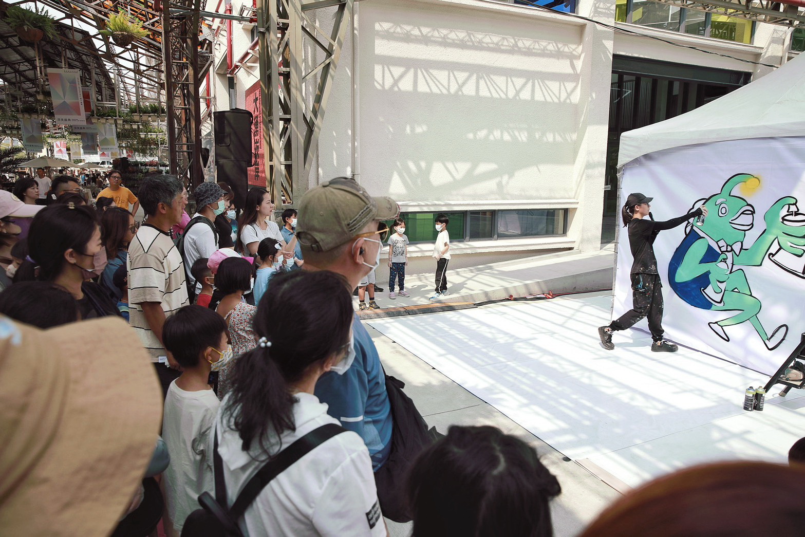 28、29日並舉辦「藝術自造市集」集結40家以上品牌,現場吸引大小朋友一起體驗噴漆塗鴉,讓園區宛如藝術創作樂園。