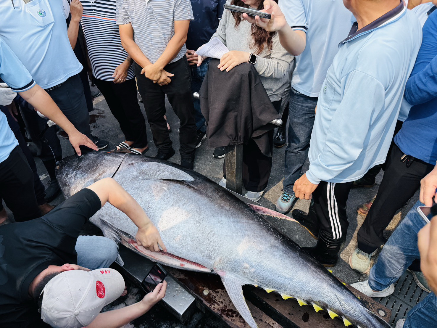 經鑑定小組檢視起鉤錄影畫面,並確認船長已完成去鰓及去內臟處理,符合相關規範,磅重確認魚體重量達175公斤以上,正式宣布取得第一鮪資格。