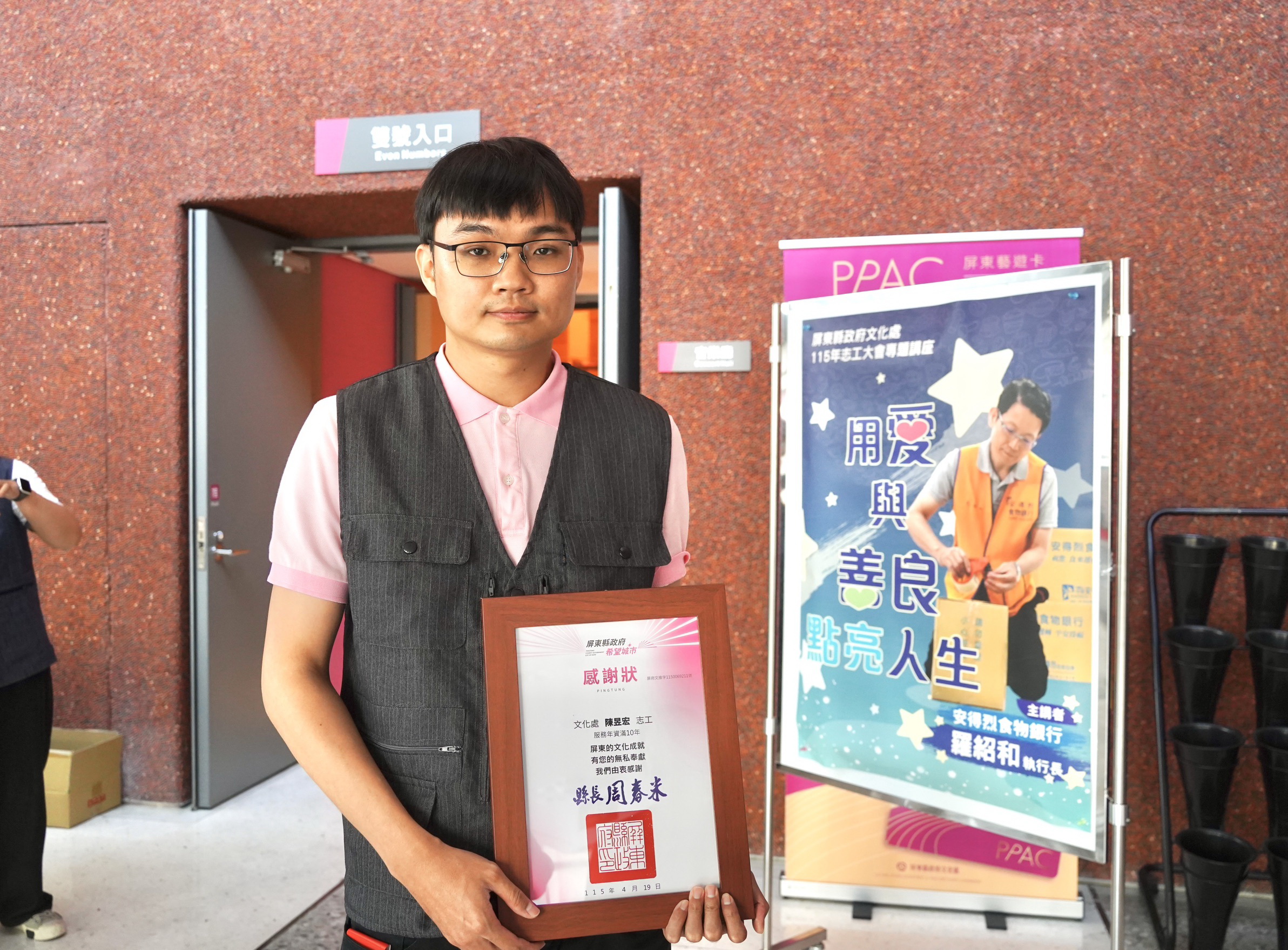 長期為屏東演藝廳常客,進而投入志工服務,將興趣轉化為投入文化推廣的動力,擔任志工後。