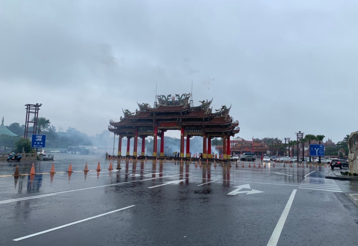 中央氣象署針對臺南地區發布大雨特報,今日上午9時,北門區南鯤鯓廟20分鐘內降下28mm強降雨,導致南鯤鯓廟廣場積水,香客只好冒雨進香。