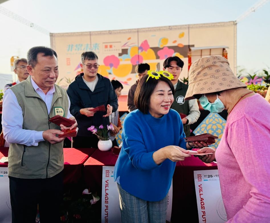 大年初二是傳統的回娘家的好日子,周縣長特地來到熱博園區,向鄉親們恭賀新春快樂,並親手發送特製紅包。