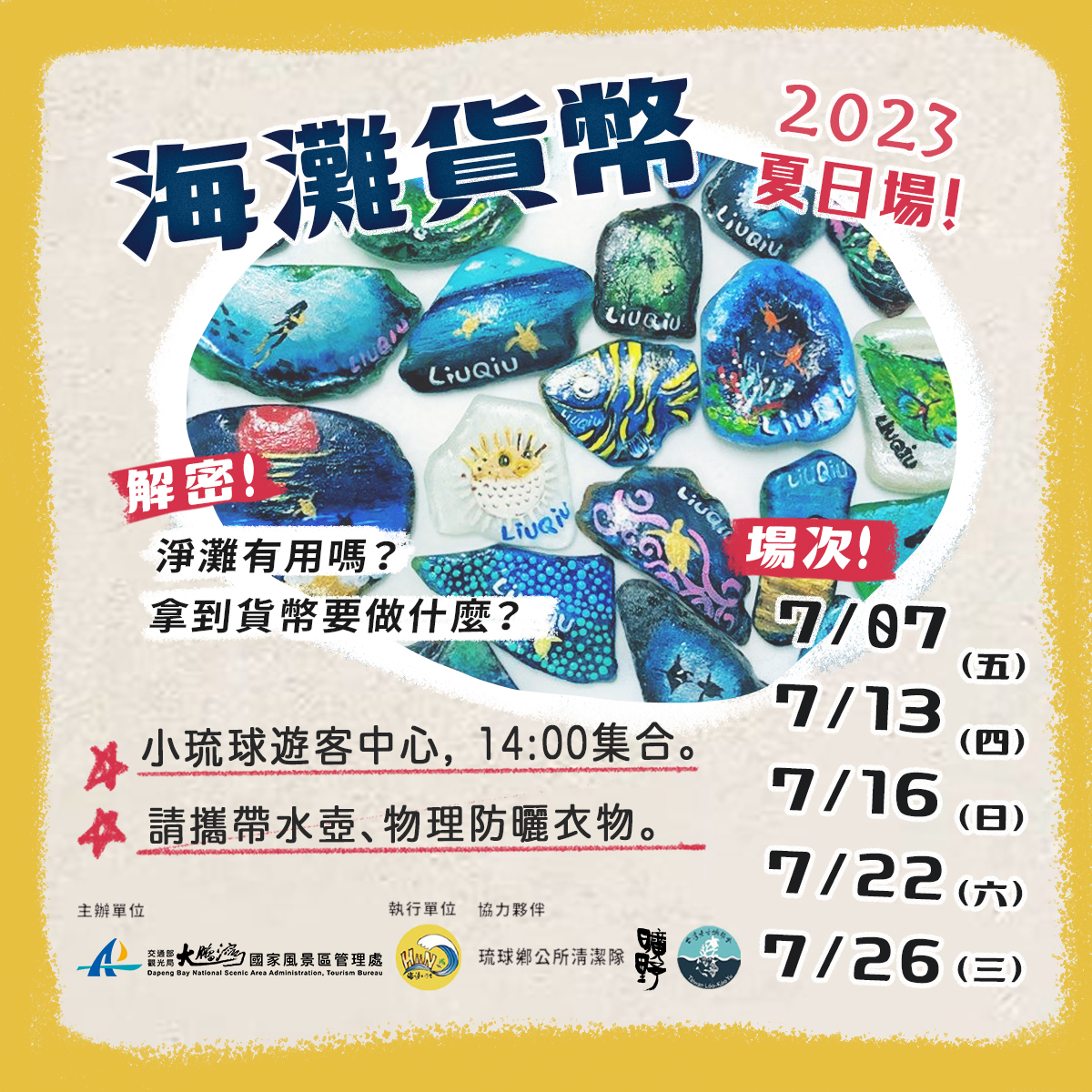 大鵬灣國家風景區管理處(以下簡稱鵬管處)自2017年起在小琉球首度推出海灘貨幣淨灘活動,「海灘貨幣」僅來小琉球參加淨灘活動才有機會取得,今年將在7月7日、13日、16日、22日和26日辦理五場次,邀遊客參與共同保護小琉球的海灘環境。