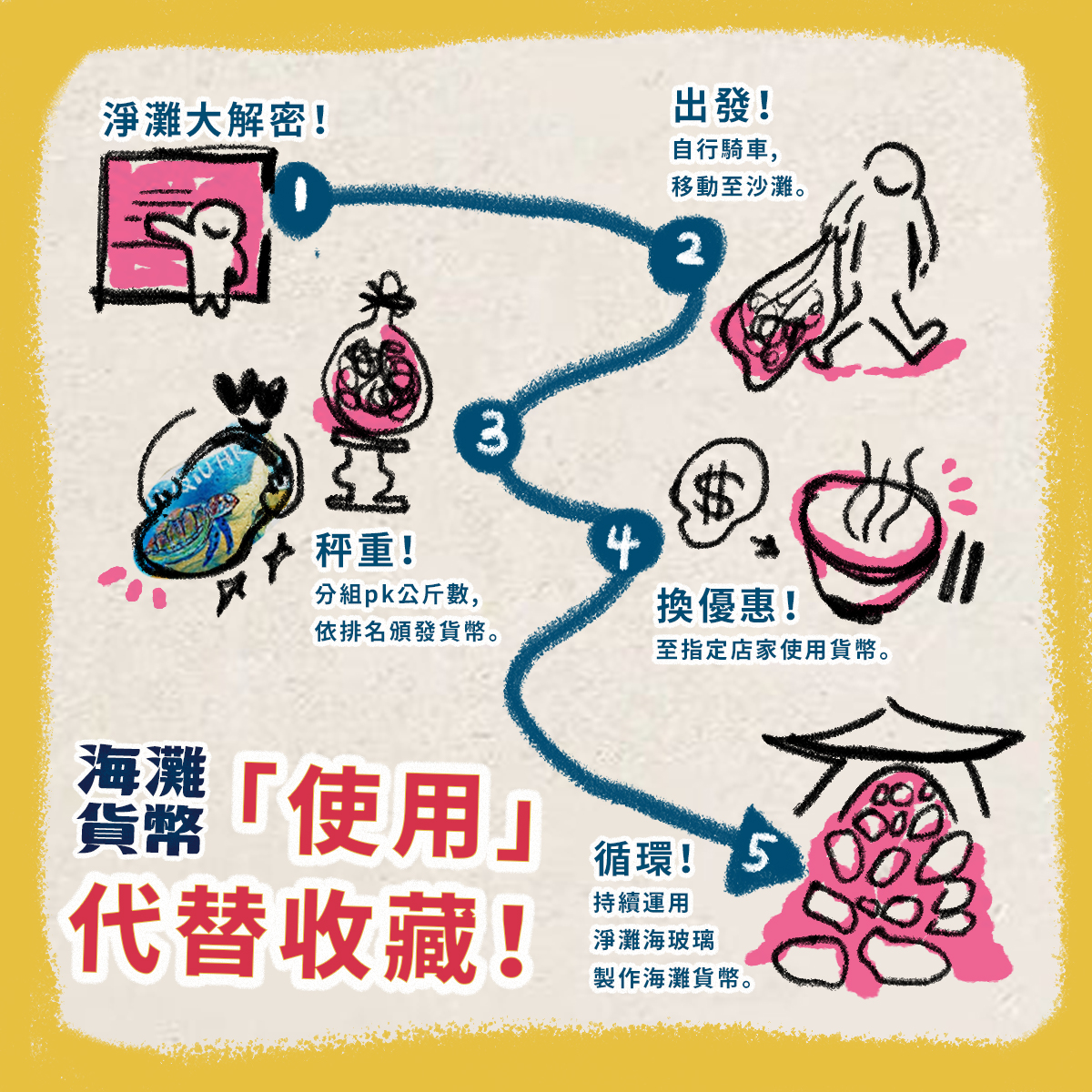合作單位台灣咾咕嶼協會表示,海灘貨幣淨灘活動內容簡單,只需在下午2點前抵達小琉球遊客中心,自備攜帶水壺、防曬衣物和交通工具即可參加!活動中將進行分組競賽,清理越多海灘垃圾的隊伍,將有機會獲得「海灘貨幣」獎勵!這些貨幣可在島上超過100家店家消費折抵。