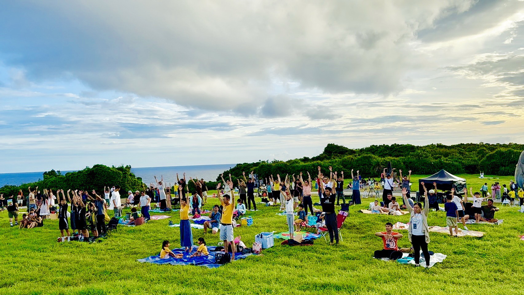大小朋友一同緩慢伸展、調整呼吸,在大自然懷抱中放鬆身心,迎接音樂與星空的到來。