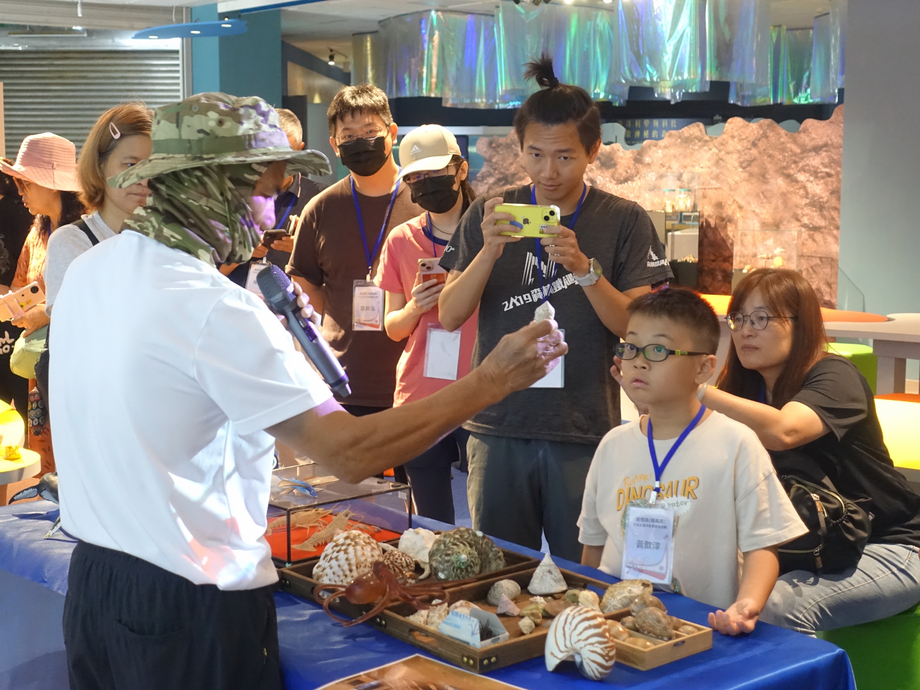 ( 達悟長老廖清福利用博物館蒐藏介紹蘭嶼如何利用海洋生物 圖/海科館提供 )