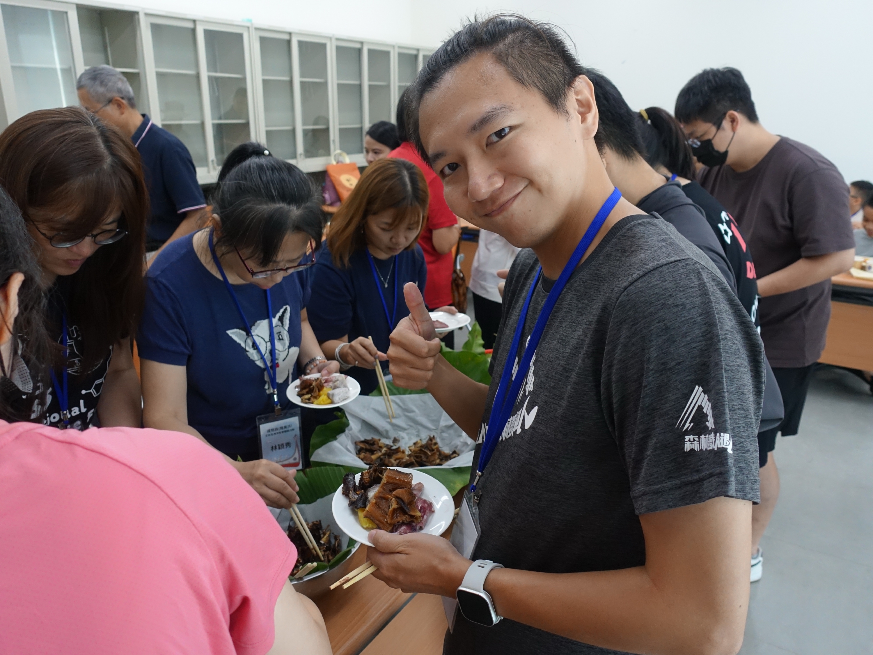 ( 中午大家品嘗蘭嶼用簡單烹調的風味食物-地瓜芋頭飛魚乾 圖/海科館提供 )