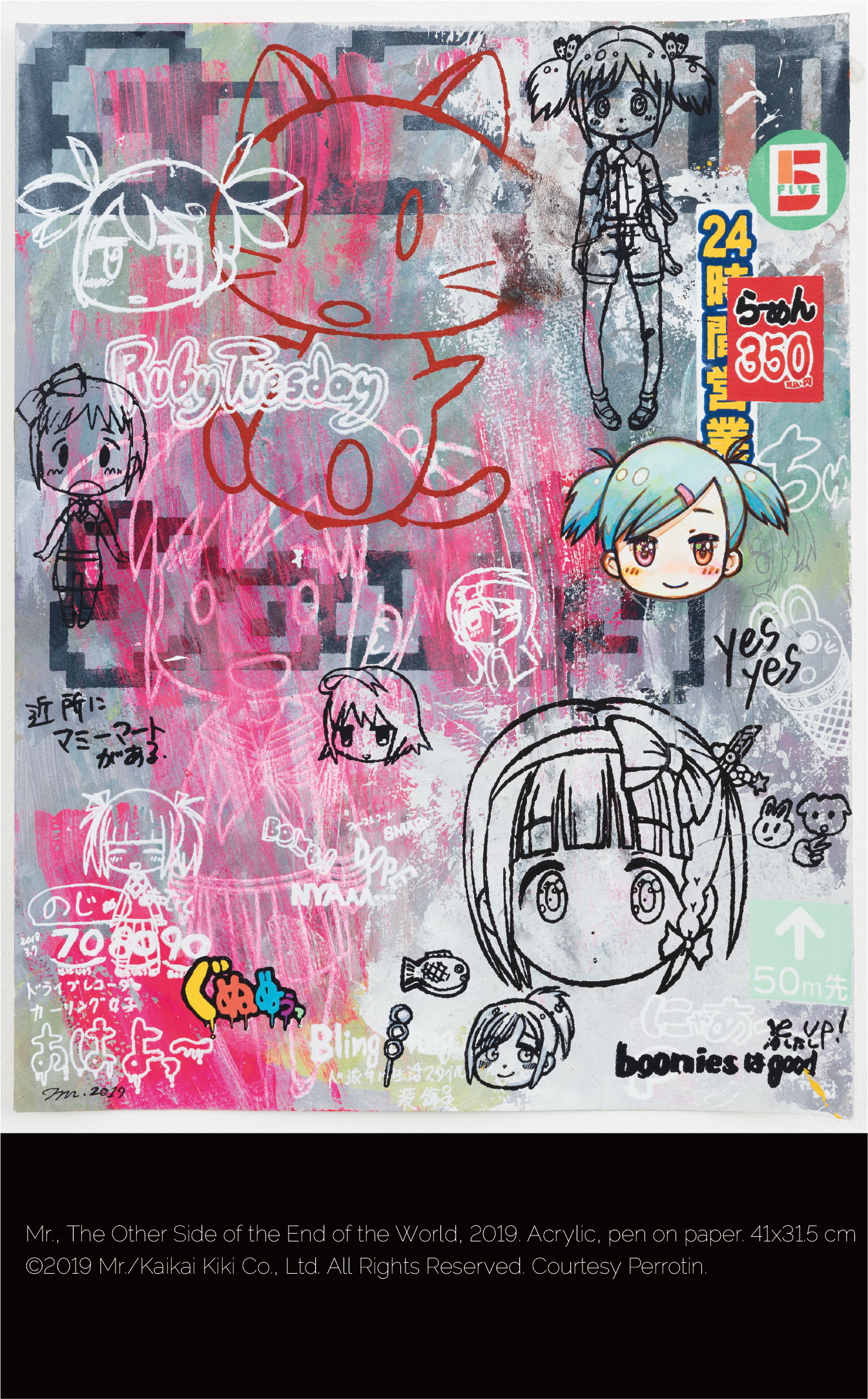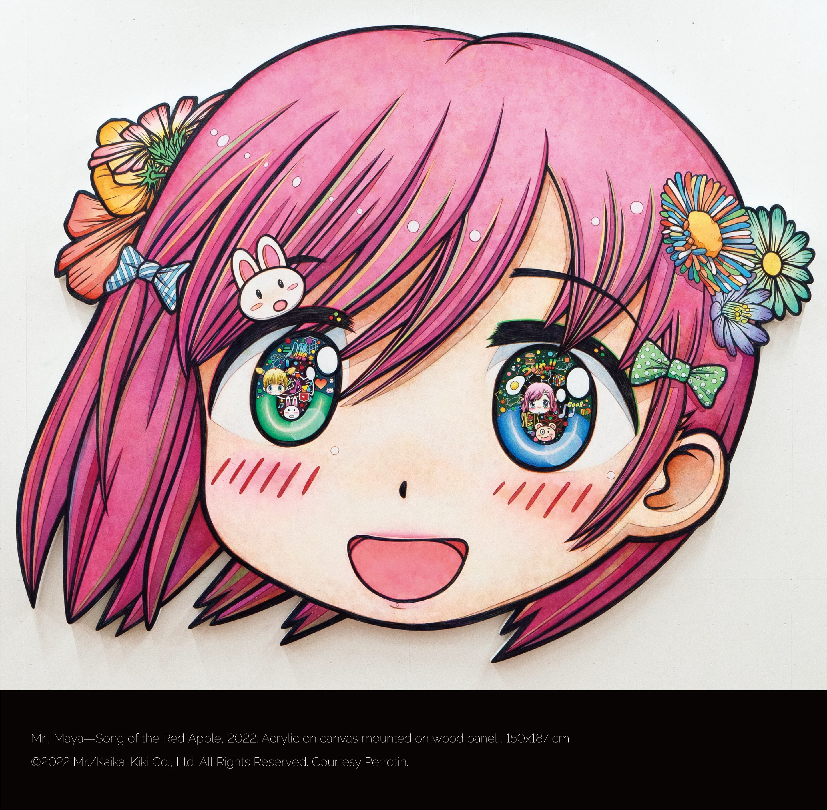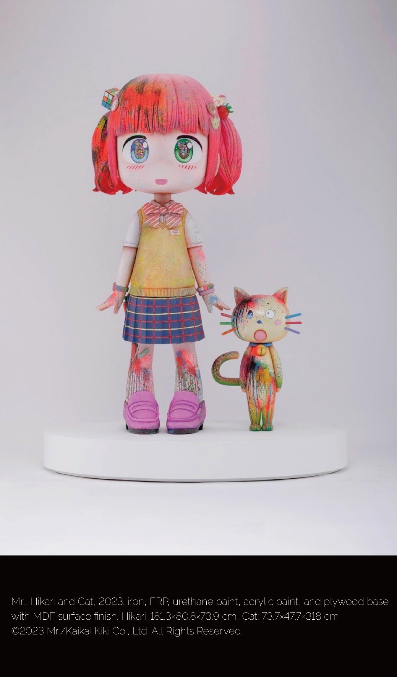 高雄市立美術館館長顏名宏表示,Mr.的少女角色多以正面、水平的姿態呈現,讓觀者得以用平等的距離與其相遇,展現既絢麗又混沌的世界觀。