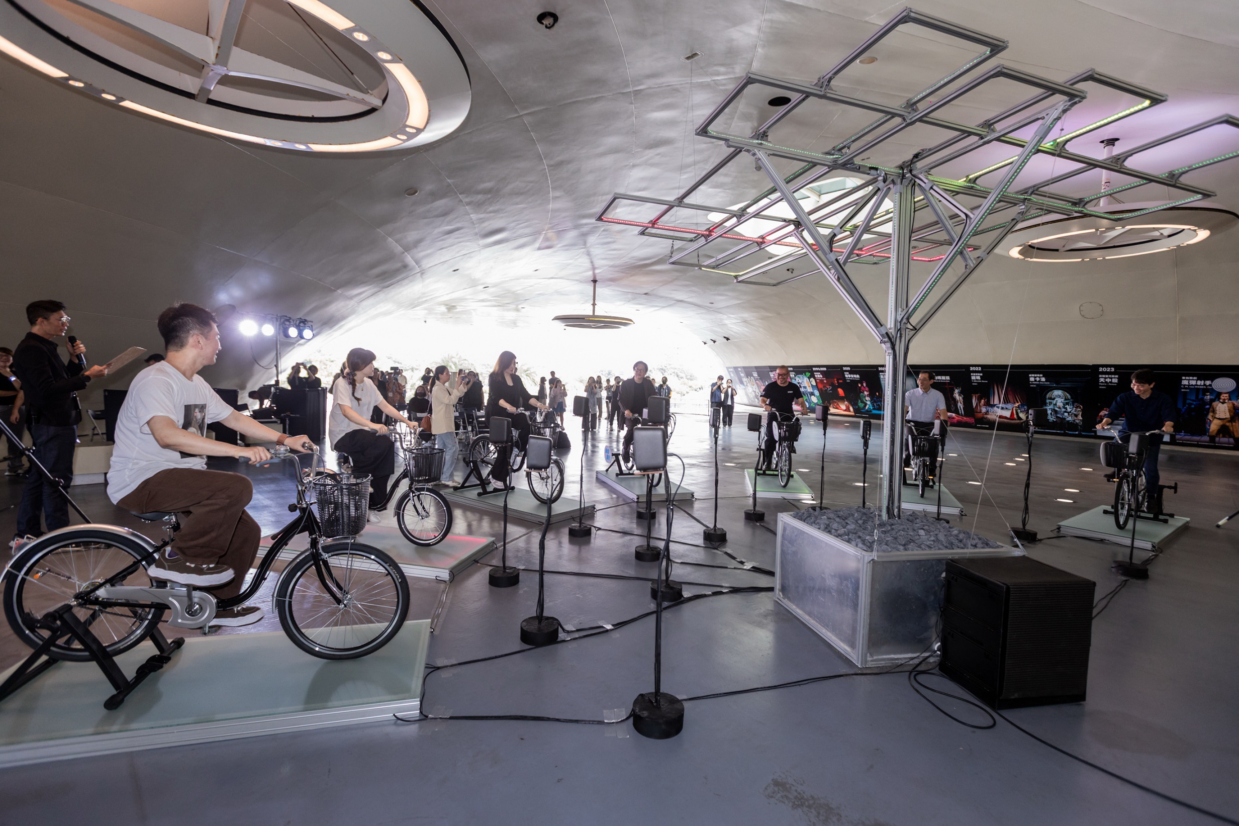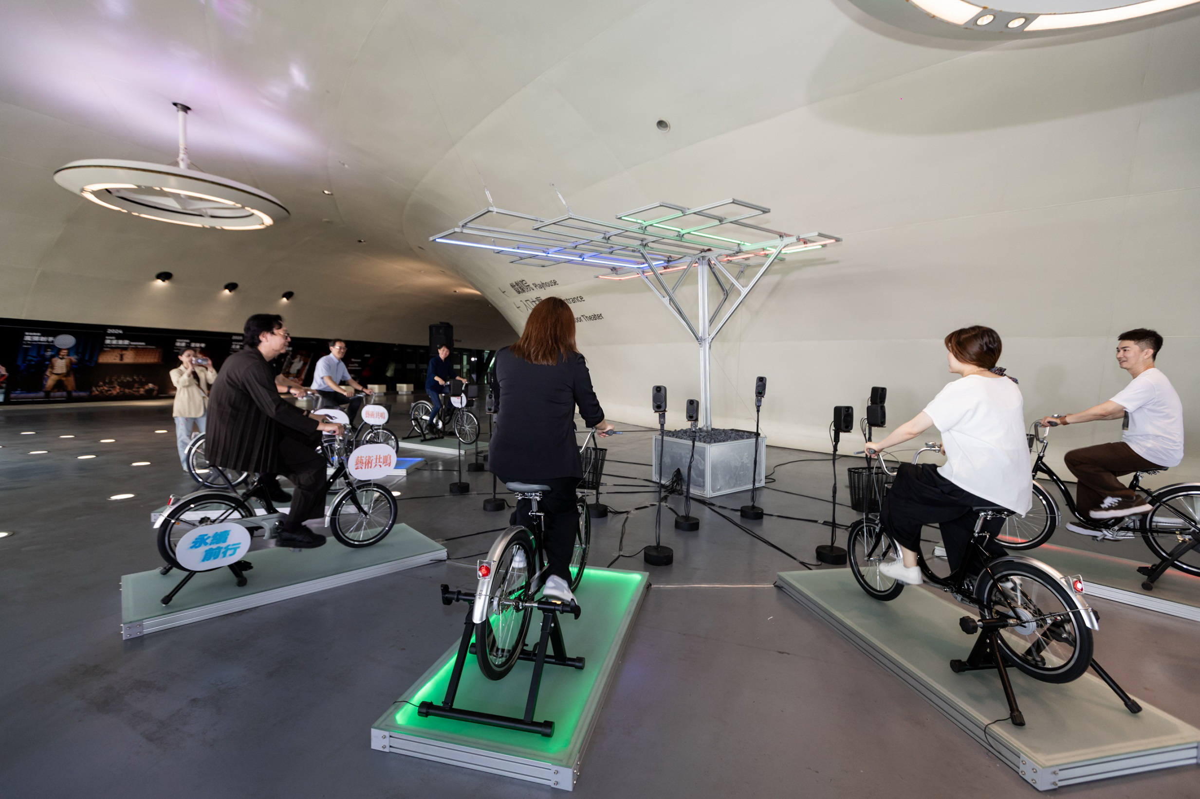 民眾踩踏腳踏車觸發聲音及燈光,將「低碳行動」實現於一場充滿聲光律動的感官體驗。